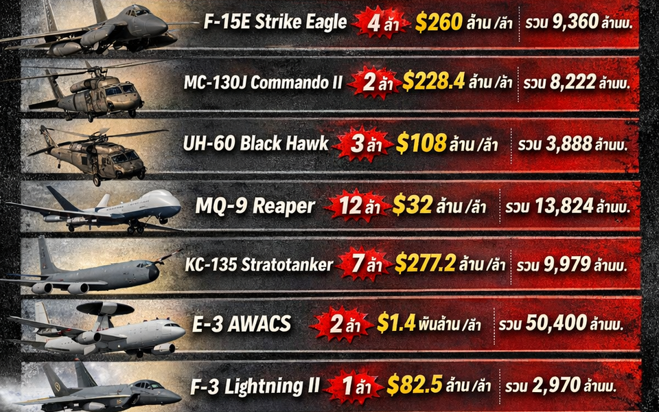 F-15E Strike Eagle มูลค่า 260 ล้านดอลลาร์ (≈ 9,360 ล้านบาท) จำนวน 4 ลำ