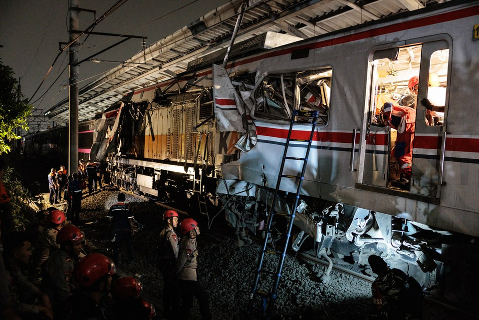 ยอดผู้เสียชีวิตพุ่งสูงขึ้นเป็น 7 ราย และมีผู้บาดเจ็บอีกกว่า 81 คน จากเหตุโศกนาฏกรรมรถไฟโดยสารพุ่งชนกันอย่างรุนแรงที่สถานีเบกาซี ติมูร์ ชานเมืองจาการ์ตา ประเทศอินโดนีเซีย เจ้าหน้าที่กู้ภัยต้องทำงานแข่งกับเวลาเพื่อช่วยเหลือผู้ติดค้างในซากรถ