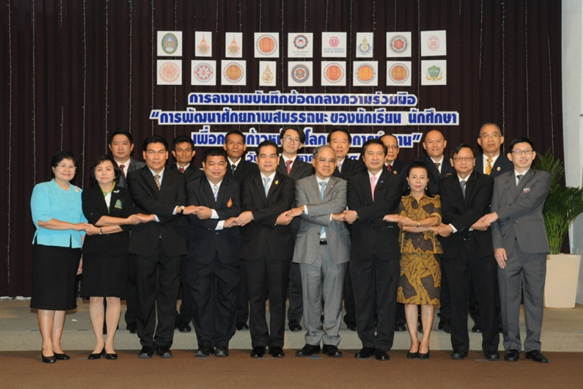 ที่โรงแรมเจ้าพระยาปาร์ค เมื่อวันที่ 9 ส.ค.59 สถาบันคุณวุฒิวิชาชีพ(องค์การมหาชน) หรือ สคช.ได้จัดให้มีการลงนามข้อตกลงความร่วมมือ(MOU) เรื่อง "การพัฒนาศักยภาพสมรรถนะของนักศึกษา เพื่อการก้าวเข้าสู่โลกของการทางาน" ระหว่างสถาบันคุณวุฒิวิชาชีพ(องค์การมหาชน) กับสถาบันการศึกษา 18 แห่ง ประกอบด้วย