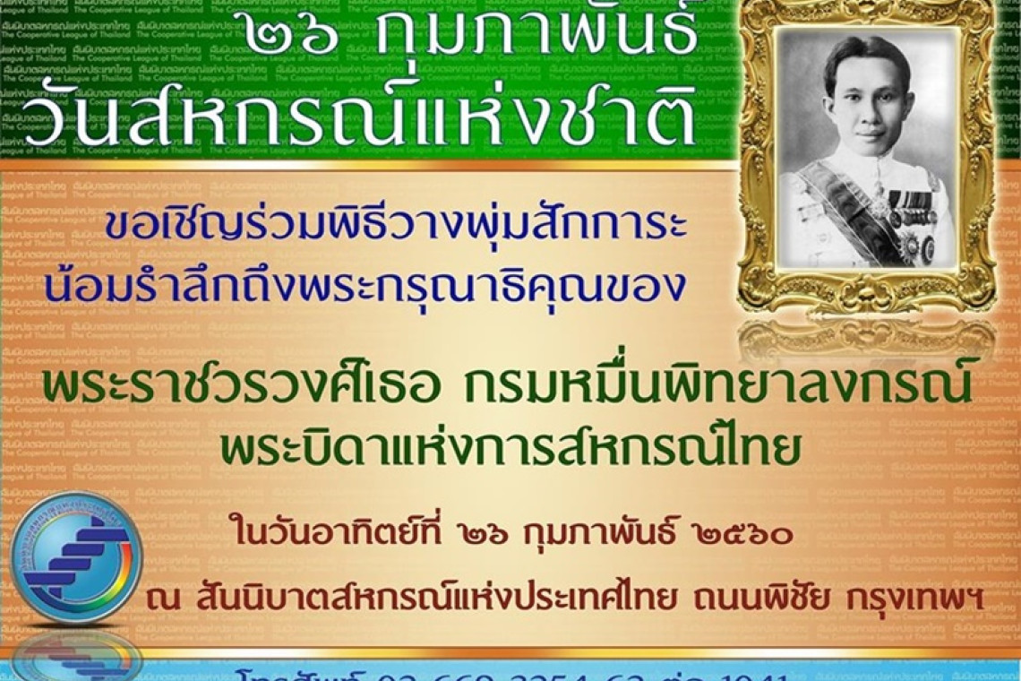 สันนิบาตสหกรณ์แห่งประเทศไทย (สสท.) และขบวนการสหกรณ์ จัดงาน “วันสหกรณ์แห่งชาติ ประจำปี 2560” เพื่อน้อมรำลึกพระบิดาแห่งการสหกรณ์ไทย และพร้อมเปิดพิพิธภัณฑ์ และนิทรรศการสหกรณ์ ขณะที่ "มงคลัตถ์" เตรียมปรับโฉมการทำงานเน้นรูปแบบทันสมัย และเปิดรับคำติชมจากสหกรณ์สมาชิก นายมงคลัตถ์ พุกกะนัดด์ ประธานกรรมการดำเนินการสันนิบาตสหกรณ์แห่งประเทศไทย (สสท.) กล่าวว่า สันนิบาตสหกรณ์แห่งประเทศไทย เป็นองค์กรสูงสุดในขบวนการสหกรณ์ พร้อมให้การสนับสนุนสหกรณ์ และขบวนการสหกรณ์อย่างเต็มที่ ทั้งนี้ วันที่ 26 กุมภาพันธ์ของทุกปี รัฐบาลกำหนดให้เป็น “วันสหกรณ์แห่งชาติ” สันนิบาตสหกรณ์ฯ จึงได้กำหนดจัดกิจกรรมงาน “วันสหกรณ์แห่งชาติ ประจำปี 2560” เพื่อน้อมรำลึกถึงพระกรุณาธิคุณของพระราชวรวงศ์เธอ กรมหมื่นพิทยาลงกรณ์ พระบิดาแห่งการสหกรณ์ไทย และเป็นแสดงพลังความสามัคคีของขบวนการสหกรณ์ไทยและตระหนักถึงคุณค่า และศรัทธาในระบบสหกรณ์ โดยได้รับพระกรุณาจากหม่อมเจ้าภีศเดช รัชนี ประธานมูลนิธิโครงการหลวง และพระโอรสองค์สุดท้องในพระราชวรวงศ์เธอ กรมหมื่นพิทยาลงกรณ์ เสด็จเป็นประธานพิธีวางพุ่มสักการะพระบิดาแห่งการสหกรณ์ไทย และได้รับเกียรติจากดร.วิณะโรจน์ ทรัพย์ส่งสุข อธิบดีกรมส่งเสริมสหกรณ์ เป็นประธานในพิธีเปิดงาน พร้อมกล่าวสดุดีพระบิดาแห่งการสหกรณ์ไทย ในวันที่ 26 กุมภาพันธ์ 2560 ณ สันนิบาตสหกรณ์แห่งประเทศไทย ถนนพิชัย เขตดุสิต กรุงเทพฯ นายมงคลัตถ์  พุกกะนัดด์ ประธานกรรมการดำเนินการสันนิบาตสหกรณ์แห่งประเทศไทย ประธานกรรมการดำเนินการสันนิบาตสหกรณ์ฯ กล่าวว่า ในปีนี้นับเป็นปี 101 ที่ขบวนการสหกรณ์ไทยได้ถือกำเนิดขึ้นในประเทศไทย สันนิบาตสหกรณ์ฯ ได้ถือโอกาสเปิดพิพิธภัณฑ์และนิทรรศการการสหกรณ์ ภายใต้ร่มพระบารมี ในหลวงรัชกาลที่ 9 เริ่มตั้งแต่ก่อตั้งจนถึงปัจจุบัน ที่คนรุ่นหลังควรจะศึกษา และเรียนรู้ ในงานยังมีกิจกรรมมอบโล่ให้กับสหกรณ์ที่ชนะการประกวดนวัตกรรม ด้านผลิตภัณฑ์ จำนวน 3 สหกรณ์ ได้แก่ 1. สหกรณ์เครือข่ายโคเนื้อ จำกัด 2.สหกรณ์เกษตรลำพระเพลิง จำกัด 3.สหกรณ์การเกษตรนิคมบางระกำ จำกัด และด้านบริการ ได้แก่ สหกรณ์แท็กซี่สยาม จำกัด “ขณะนี้สันนิบาตสหกรณ์ฯ กำลังปรับเปลี่ยนการทำงานโฉมใหม่ สู่รูปแบบที่ทันสมัยขึ้น เพื่อให้สอดรับกับระเบียบและข้อบังคับต่างๆ รองรับ พ.ร.บ.สหกรณ์ พ.ศ.2560 และก้าวให้ทันกับการเปลี่ยนแปลง โดยสหกรณ์สามารถแนะนำ ติชม การทำงานของสันนิบาตสหกรณ์ฯ ได้ในทุกๆ ช่องทาง ซึ่งมีนโยบายหลัก คือ ทุกสหกรณ์ยอมรับในตัวผู้บริหาร ทีมงาน และเจ