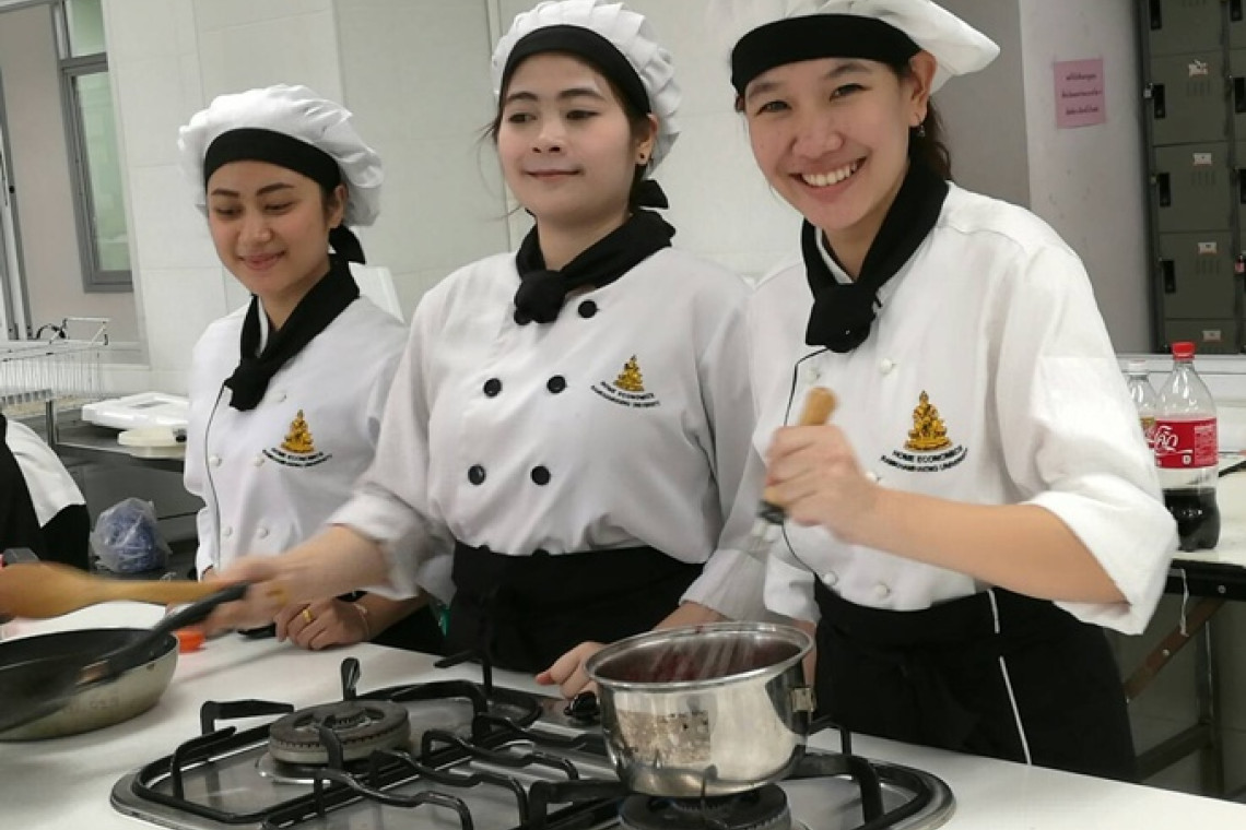 ในครัวแห่งนี้ยังได้คุยกับ"ว่าที่เชฟ"ท่ามกลางเสียงพูดคุย เสียงหัวเราะและความร้อนจากเตาอบขนม หลายคนบอกเราว่า การเรียนในภาควิชาคหกรรมศาสตร์ วิชาอาหารตะวันตก ทั้งโหด สนุกและท้าทายความมุ่งมั่นของผู้เรียน
