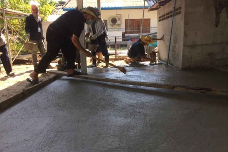 ...บักทึก 25 กุมภาพันธ์ 2560 การปฏิบัติงานของ กศน.ช่วยชาวใต้ซ่อมสร้างยังคงเดินหน้าต่อไปอย่างเข้มแข็ง และต้องแข่งกับเวลารวมทั้งความเดือดร้อนที่เราได้พบเจอยังพบอยู่เรื่อยๆ วันนี้ทีมคนแกร่ง กศน.กำแพงเพชร แบ่งเป็น 2 ทีม ลุยงานต่อเนื่อง ทีมแรก เป็นการผนึกกำลังกันของกลุ่ม "ผอ.กศน." นำโดย นายอนันต์ แก้วทอง ผอ.กศน.อำเภอขาณุวรลักษบุรี, นายอนันต์ คงชุม ผอ.กศน.อำเภอคลองลาน ปฏิบัติงานเทพื้นคอนกรีต ที่บ้านนายบุญเลิศ เยือกเย็น-นางนิดา ทองมี เลขที่ 55 หมู่ที่ 2 บ้านกรูด ตำบลธงชัย อำเภอบางสะพาน