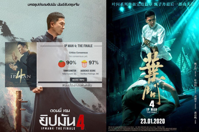 ภาพยนตร์ ยิปมัน 4 เดอะไฟนอล ผลงานกำกับโดย วิลสัน ยิป ที่ยังได้นักแสดงแม่เหล็กอย่าง ดอนนี่ เยน นำแสดง ร่วมด้วย อู่เยว่, แดนนี่ ชาน, แวนเนส วู, สก็อต แอดคินส์, คริส คอลลินส์ และ เคนท์ เจิ้ง เปิดตัวอย่างยิ่งใหญ่เป็นอันดับ 1 ในจีนและมาเลเซีย ล่าสุดได้รับคะแนนและคำวิจารณ์ที่ดีบนหน้าเว็บ Rotten Tometoes สูงถึง 90%