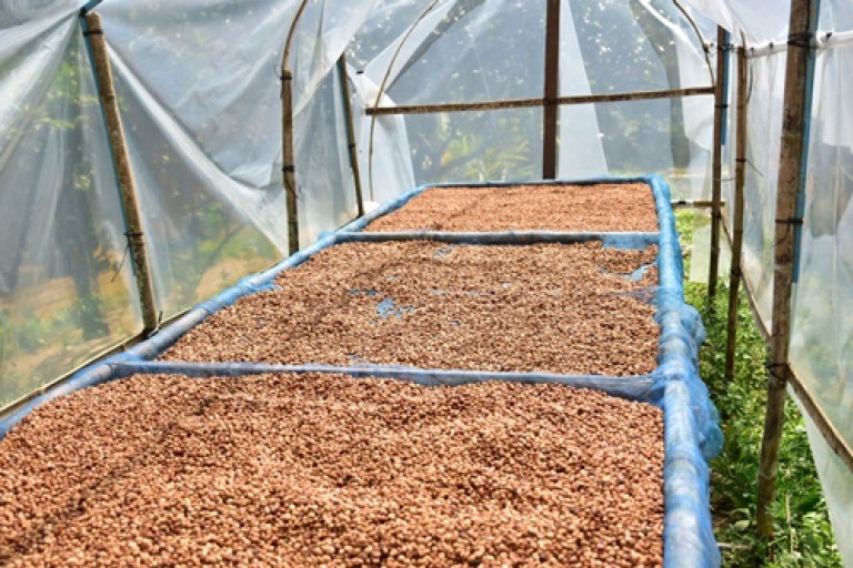 “คอนโดกาแฟ” หรือโรงอบเมล็ดกาแฟที่ทำขึ้นในครั้งนี้ ต้องยกชั้นเป็นแคร่สูงจากพื้นดินคล้ายๆ โต๊ะอาหารปูพื้นด้วยไม้ไผ่สับและคลุมพลาสติกเป็นรูปโค้งด้านบน เพื่อเอาไว้กันน้ำฝน มีแสงแดดส่องถึงเมล็ดกาแฟ และที่สำคัญจะมีความร้อนอบอ้าว เป็นผลทำให้กาแฟแห้งในเวลา 6-8 วัน เมล็ดกาแฟที่ได้มีความแห้ง และมีเคมีความหอมของกาแฟที่ถูกแสงแดดที่อบอยู่หลายวัน ช่วยขับให้กาแฟมีกลิ่นหอมปราศจากกลิ่นเหม็นและรสเปรี้ยวเหมือนกับการตากผลผลิตกาแฟที่วาง "แบกะดิน" เหมือนแต่เดิม ผลผลิตกาแฟที่ได้นับว่ามีคุณภาพดี