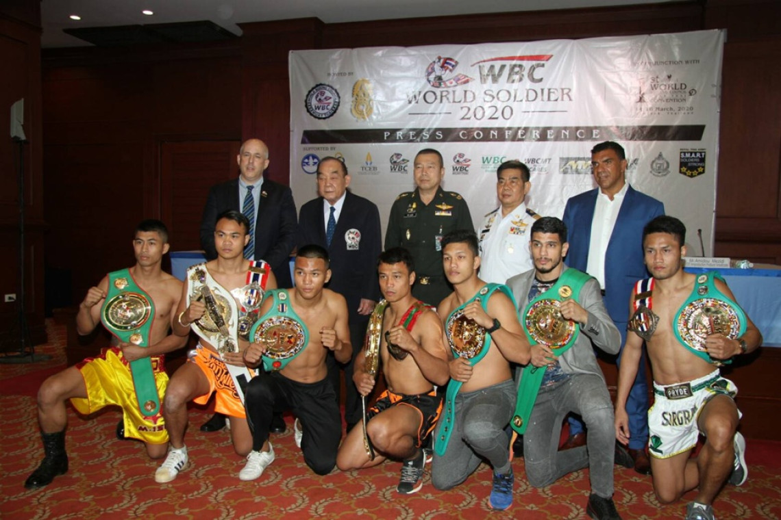 วันที่ 8 มกราคม 2563 สโมสรกองทัพบก พล.ต.ราชิต อรุณรังษี เจ้ากรมสวัสดิการทหารบก/นายสนามมวยเวทีลุมพินี เป็นประธานแถลงข่าว พร้อมด้วยพล.ต.อ.โกวิท ภักดีภูมิ ประธานสภามวยโลกมวยไทย , นายปรเมษฐ์ ภักดีคีรีไพวัลย์ รักษาการผู้อำนวยการสำนักงานงานคณะกรรมการกีฬามวย , มิสเตอร์เควิ่น นูน เลขาธิการสภามวยโลกมวยไทย และ มิสเตอร์ อมิดูร์ เมซิดี้ ซีอีโอ อมิดูร์ชั่น โปรดัก บอร์ดแคส ร่วมแถลงข่าวการจัดศึกมวยไทยทหารชิงแชมป์โลก “WBC WORLD SOLDIER” วันอาทิตย์ที่ 15 มีนาคม 2563 ณ สนามมวยเวทีลุมพินี โดยมี ยอดวิชา ยอดวิชามวยไทยยิม , สิทธิชัย ศิษย์สองพี่น้อง, เซราะกราว เพชรยินดีอะคาดมี่ , ธนญชัย ราชานนท์ , ยูเซฟ บุคคาเนม และ อภิเชษฐ์ เพชรมณี เป็นตัวแทนทหารไทย สู้ศึกครั้งนี้ ชิงแชมป์WBC MuayThai 3 รุ่น และ WBC Asia 1 รุ่น