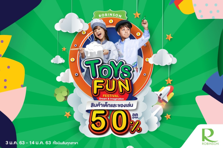 ‘ROBINSON TOYS FUN FESTIVAL’ (โรบินสัน ทอยส์ ฟัน เฟสติวัล) ตั้งแต่วันที่ 3 – 14 มกราคม 2563 ที่ห้างสรรพสินค้าโรบินสัน ทุกสาขา ลดแรง สินค้าเด็กและของเล่น สูงสุด 50%
