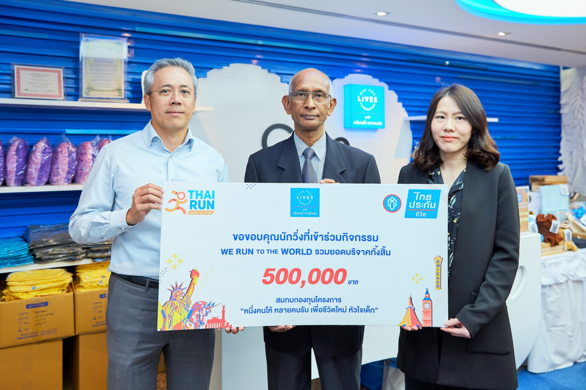 นางสาวฐิติมา เลี้ยงพาณิชย์ ผู้อํานวยการฝ่าย กลุ่มสื่อสารองค์กร บริษัท ไทยประกันชีวิต จำกัด (มหาชน) และนายกมล สิริชัน Co-founder & COO บริษัท ไทยดอทรัน จำกัด (ThaiRun) ร่วมมอบเงินบริจาคจำนวน 500,000 บาท จากกิจกรรม Virtual Run: We Run to the World 2019 แก่นายไพโรจน์ เผือกประพัฒน์ กรรมการ และผู้จัดการมูลนิธิหนึ่งคนให้ หลายคนรับ เพื่อสมทบโครงการหนึ่งคนให้ หลายคนรับ เพื่อชีวิตใหม่หัวใจเด็ก สำหรับเป็นค่าใช้จ่ายผ่าตัดผู้ป่วยเด็กโรคหัวใจที่ขาดแคลน ณ อาคารไทยประกันชีวิต สำนักงานใหญ่ ถ.รัชดาฯ
