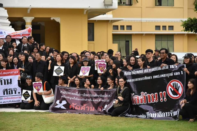 วันที่ 17 ม.ค. ที่กระทรวงศึกษาธิการ (ศธ.) กลุ่มศึกษานิเทศก์ (ศน.) บุคลากรกลุ่มตรวจสอบภายใน (ตสน.) และบุคลากรกลุ่มเทคโนโลยีและสารสนเทศทางการศึกษา (ICT) จากสำนักงานเขตพื้นที่การศึกษาทั่วประเทศ กว่า 1,000 คน แต่งชุดดำเข้ายื่นหนังสือ ถึง นายณัฏฐพล ทีปสุวรรณ รัฐมนตรีว่าการกระทรวงศึกษาธิการ (ศธ.) นายวราวิช กำภู ณ อยุธยา ที่ปรึกษารัฐมนตรีว่าการกระทรวงศึกษาธิการในฐานะประธานคณะกรรมการปรับปรุงโครงสร้างกระทรวงศึกษาธิการ นายประเสริฐ บุญเรือง ปลัดกระทรวงศึกษาธิการ และผู้บริหารองค์กรหลัก เพื่อคัดค้าน การถ่ายโอน ศน. ภายในสำนักงานเขตพื้นที่การศึกษา (สพท.) ไปสังกัดสำนักงานปลัดกระทรวงศึกษาธิการ (สป.ศธ.) ซึ่งการเคลื่อนไหวครั้งนี้ ถือเป็นวันที่ 2 ในรอบสัปดาห์ นายธนชน มุทาพร ผู้อำนวยการสำนักงานเขตพื้นที่การศึกษาประถมศึกษา (สพป.) ชัยภูมิ เขต 1 ในฐานะประธานชมรมผู้อำนวยการสำนักงานเขตพื้นที่การศึกษาแห่งประเทศไทย (ชร.ผอ.สพท.) เปิดเผยว่า สมาคมผู้บริหารเขตพื้นที่การศึกษาแห่งประเทศไทย สมาคมผู้บริหารเขตพื้นที่การศึกษามัธยมศึกษาประเทศไทย และชมรมผู้อำนวยการสำนักงานเขตพื้นที่การศึกษาแห่งประเทศไทย พร้อมด้วย ชมรมศึกษานิเทศก์แห่งประเทศไทย ตลอดจนพี่น้องบุคลากรทางการศึกษาอื่น ตามมาตรา 38 ค(2) ไม่เห็นด้วยและจะขอคัดค้านจนถึงที่สุด เพราะข้อเสนอดังกล่าวเป็นการดำเนินการโดยขาดหลักธรรมาภิบาล อาศัยอำนาจของคณะกรรมการขับเคลื่อนการปฏิรูปการศึกษาของกระทรวงศึกษาธิการในภูมิภาค ซึ่งเป็นคณะกรรมการที่ประกอบด้วยผู้บริหารองค์กรหลัก ไม่มีผู้มีส่วนได้ส่วนเสีย หรือกรรมการผู้ทรงคุณวุฒิ ร่วมพิจารณาและข้อเสนอแนวทางนี้เป็นอีกกลยุทธ์หนึ่งที่ต้องการทำลายเขตพื้นที่ฯ ให้อ่อนแอ เพื่อไปสร้างความเข้มแข็งให้กับสำนักงานศึกษาธิการจังหวัด(ศธจ.) ทั้งนี้โดยข้อเท็จจริง คุณภาพการศึกษาจะบังเกิดผลได้ก็โดยการปฏิรูปการเรียนการสอนในห้องเรียนเป็นสำคัญซึ่งเป็นบทบาทหน้าที่โดยตรงของสำนักงานเขตพื้นที่การศึกษาที่กำกับติดตาม ส่งเสริม สนับสนุนให้เกิดการปฏิรูปการเรียนการสอนในห้องเรียน และสร้างความเข้มแข็งให้กับสถานศึกษาในสังกัด ให้มีคุณภาพตามมาตรฐานการศึกษาชาติ โดยมีศึกษานิเทศก์ และกลุ่มส่งเสริมการศึกษาทางไกล เทคโนโลยีสารสนเทศและการสื่อสาร เป็นผู้รับผิดชอบร่วมกันโดยตรง ซึ่งข้อเสนอดังกล่าวนี้ถ้าคณะกรรมการขับเคลื่อนการปฏิรูปการศึกษาของกระทรวงศึกษาธิการในภูมิภาคให้ความเห็นชอบ ก็คือความผิดพลาดครั้งใหญ่หลวงของการปฏิรูปการศึกษาจะส่งผลกระทบต่อคุณภาพก