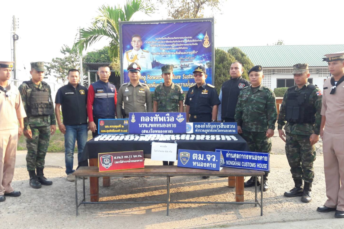 วันที่ 18 ม.ค. 2563 เวลา 08.30 น. ณ สถานีเรือหนองคาย (นรข.เขตหนองคาย) อ.เมืองหนองคาย จ.หนองคาย น.ท.ธิติวัฒน์ เนียมประพันธ์ ผบ.หมู่เรือที่ 4 และ รักษาราชการแทนหัวหน้าสถานีเรือหนองคาย พร้อมด้วย พ.ต.ท.ประเสริฐ ธรรมชัย รอง ผกก.สืบสวน ภ.จังหวัดหนองคาย นายสมบัติ ฆ้อนทอง หัวหน้าฝ่ายปราบปรามทางศุลกากรหนองคาย และเจ้าหน้าที่สถานีเรือหนองคาย (นรข.เขตหนองคาย) และหน่วยงานที่เกี่ยวข้อง โดยการอำนวยการของ น.อ.ชัชวาลย์ โตรุ่ง ผบ.นรข.เขตหนองคาย ร่วมกันแถลงข่าวการตรวจยึดยาไอซ์ จำนวน 318 ถุง น้ำหนัก 426 กรัม