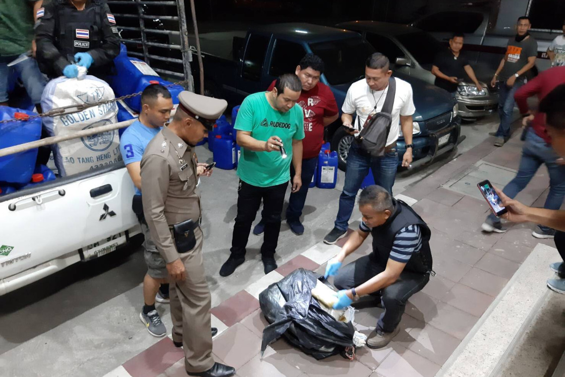 ต่อมามีรถยนต์ต้องสงสัยตามที่สายข่าวแจ้งมา คันแรกเป็นรถยนต์เก๋งฮอนด้า ซิตี้ สีขาว หมายเลขทะเบียน กว 9249 สุราษฎร์ธานี ที่มีนายสมใจหรือเปี๊ยก รักสีทอง อายุ 45 ปีอยู่บ้านเลขที่ 16 หมู่ 6 ตำบลบางขัน อำเภอบางขัน จังหวัดนครศรีธรรมราช และน.ส.วิไลลักษณ์หรือหนิง รักษา นั่งมาในรถยนต์เก๋ง ที่ใช้เบิกทางเพื่อดูด่านของตำรวจ โดยมีรถกระบะมิตซูมิชิ สีขาว มีคอก หมายเลขทะเบียน บม 921 กำแพงเพชร ขับขี่โดยนายอนุรักษ์ หรือหนึ่ง พุ่มแย้ม อายุ 36 ปีอยู่บ้านเลขที่ 61/1 หมู่ 10 ตำบลพนม อำเภอพนม จังหวัดสุราษฎร์ธานี มาพร้อม น.ส.วาสนาหรือปู เวชศาสตร์ ภายในกระบะบรรทุกถังแกลอนพลาสติกสีเขียวมาเต็มคันรถ จึงทำการตรวจค้นพบถุงขยะสีดำจำนวน 9 ถุงถูกซุกซ่อนไว้โดยมีถังแกลอนพลาสติกปิดทับอยู่ เมื่อเจ้าหน้าตำรวจเปิดถุงขยะสีดำออกดูต้องพบยาบ้าที่อัดเป็นแท่งจำนวนมาก นับได้ 2,100,000 เม็ด