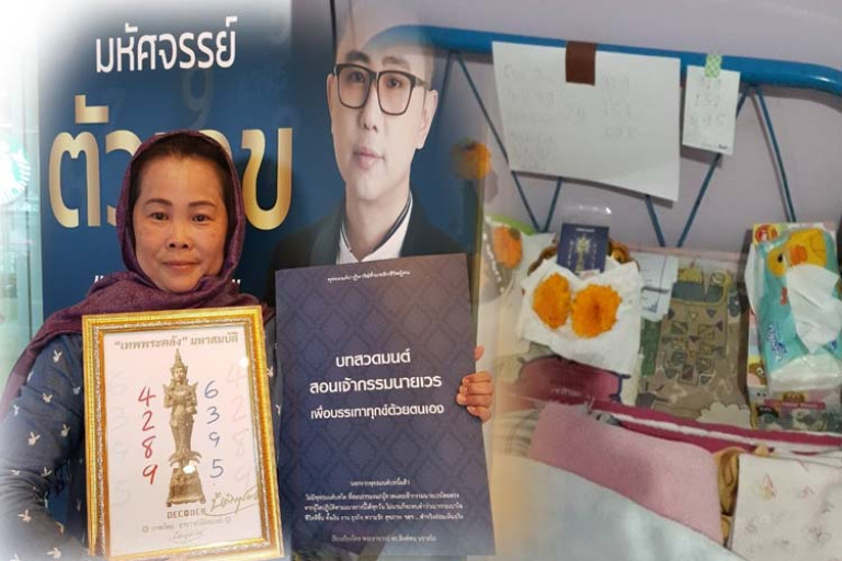 เป็นที่ฮือฮาเลยทีเดียวหลังจากได้มีการแชร์คลิปของ “ศรัณลักษณ์ ดำรงชีพ” ชาวจังหวัดฉะเชิงเทรา วัย 51 ปี ที่ป่วยเป็นโรคประหลาด เป็นแผลเน่าเฟะน้ำเหลือไหลทั้งตัวตั้งแต่หัวจรดเท้า ไม่เว้นแม้แต่อวัยวะเพศ จนกลายเป็นผู้ป่วยติดเตียงรอวันตาย แพทย์ไม่สามารถระบุได้ว่าเป็นโรคอะไรได้แต่รักษาตามอาการ กระทั่งพี่สาวของผู้ป่วยรายนี้ได้ไปร่วมงานบวงสรวงเทพพระคลังที่วงเวียนใหญ่อนุสาวรีย์พระเจ้าตากสินมหาราช ซึ่งอาจารย์นิติกฤตย์ กิตติศรีวรนันท์ ผู้คิดค้นศาสตร์พลังตัวเลขเป็นผู้จัดขึ้น ก็ได้นำการ์ดรูปเทพพระคลังที่แจกให้กับผู้ที่มาร่วมงาน ได้นำกลับบ้านมาให้ ทันทีที่ได้การ์ดเทพพระคลังผู้ป่วยรายนี้เล่าว่า ได้ยกภาพขึ้นท่วมหัวแล้วกล่าวคำอธิษฐาน หากเป็นบุญขอให้ท่านได้ให้ชีวิตใหม่ลูกให้ได้ต่อยอดพุทธศาสนา