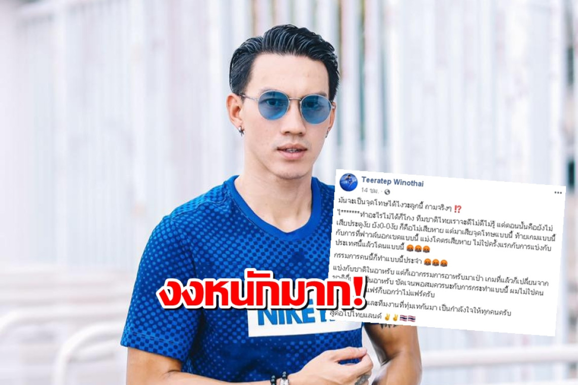 โดยหลังจบเกม ดาวยิงจากสโมสรชลบุรี เอฟซี “ลีซอ-ธีรเทพ วิโนทัย” ได้ออกมาโพสต์แสดงถึงความคับข้องใจในกับการตัดสินของกรรมการที่เป่าให้จุดโทษช่วงท้ายเกมกับ ซาอุดิอาระเบีย โดยมองว่าไม่แฟร์อย่างแรง ผ่านเฟซบุ๊กส่วนตัว Teeratep Winothai ระบุข้อความว่า...