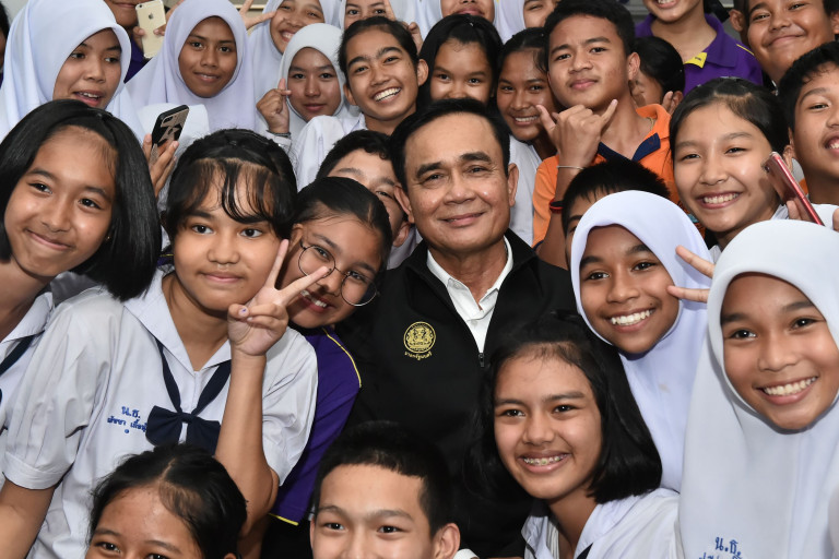 “บิ๊กตู่” อ้อนเด็กเชียร์ รับมือศึกซักฟอกไล่นายกฯ ถาม “จะช่วยเขาหรือช่วยเรา” ย้ำประเทศไทยเป็นหนึ่งเดียว ปกครองด้วยพระมหากษัตริย์ แจงสารพัดโครงการพัฒนาชายแดนใต้ ต้องใช้เวลา ก่อนเซลฟี่นร.นราธิวาส ขอให้เป็นคนดีของสังคม