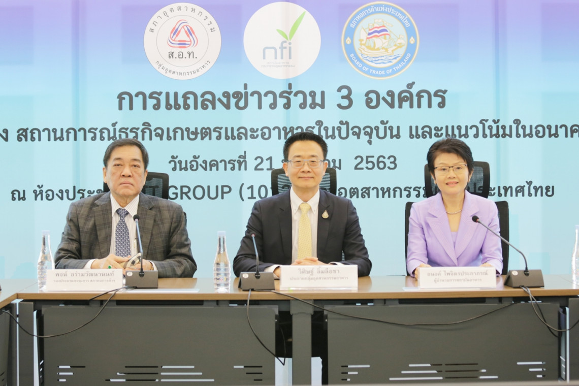 ขณะที่สภาอุตสาหกรรมฯและสภาหอการค้าฯร่วมบูรณาการข้อมูลพบว่า ในปี 2562 ดัชนีผลผลิตอุตสาหกรรมอาหารของไทยลดลงเป็นครั้งแรกในรอบ 5 ปี โดยลดลงร้อยละ 2.0 การใช้กำลังการผลิตอยู่ที่ร้อยละ 57.8 ลดลงจากร้อยละ 58.7 ในปีก่อน เนื่องจากการบริโภคภายในประเทศที่อ่อนตัวลงตามภาวะเศรษฐกิจ รายได้ครัวเรือนลดลง และอัตราเงินเฟ้อที่เพิ่มสูงขึ้น ประกอบกับภาคการส่งออกที่หดตัวลงตามเศรษฐกิจโลกที่ชะลอตัว เงินบาทแข็งค่า และราคาส่งออกสินค้าอาหารที่ลดลงกระทบต่อรายได้เข้าประเทศ