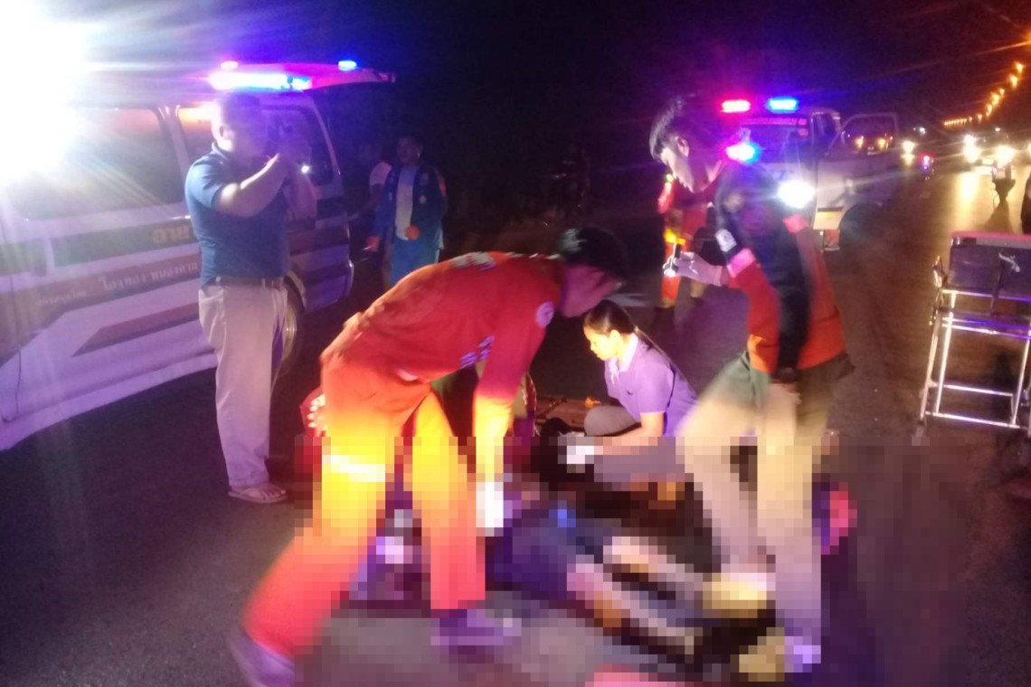 ที่เกิดเหตุพบรถยนต์กระบะยี่ห้ออีซูซุ สีขาว หมายเลขทะเบียน บพ 6261 ปราจีนบุรี ด้านหน้ารถชนอัดก๊อปปี้อยู่กับ รถจักรยานยนต์ยี่ห้อฮอนด้าเวฟ สีแดง ไม่ติดแผ่นป้ายทะเบียน โดยมีผู้ได้รับบาดเจ็บเป็นคนขับรถจักรยานยนต์ทราบชื่อ นายนิยม อินทะขินี อายุ 36 ปี ที่อยู่ 113 หมู่ที่ 6 ตำบลโพนสา อำเภอท่าบ่อ จังหวัดหนองคาย มีบาดแผลฉกรรจ์บริเวณศีรษะ เจ้าหน้าที่ช่วยปฐมพยาบาลก่อนนำส่งโรงพยาบาลสมเด็จพระยุพราชท่าบ่อ แต่ทนพิษบาดแผลไม่ไหวเสียชีวิตในเวลาต่อมา