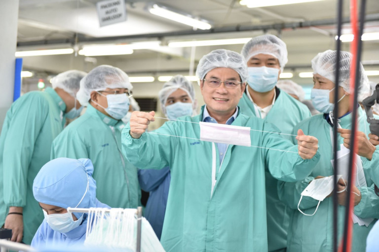 โดยศักยภาพการผลิตทั้งระบบมีอยู่ประมาณ 10 โรงงานใหญ่ มีกำลังการผลิตรวมถึงเดือนละประมาณ 100 ล้านชิ้น ซึ่งจะเห็นว่ากำลังการผลิตของเรายังเหลืออยู่อย่างไรก็ตามก็มีการประเมินโดยกรมการค้าภายในว่าการใช้ปกติเดือนละ 30 ล้านชิ้นในประเทศ และถัดจากนี้ไปถ้าสถานการณ์ไวรัสโคโรน่ายังไม่พัฒนาไปในทิศทางที่ดีขึ้น ความต้องการใช้ก็อาจจะเพิ่มจาก 30 ล้านชิ้นเป็น 40 ล้านชิ้นต่อเดือน