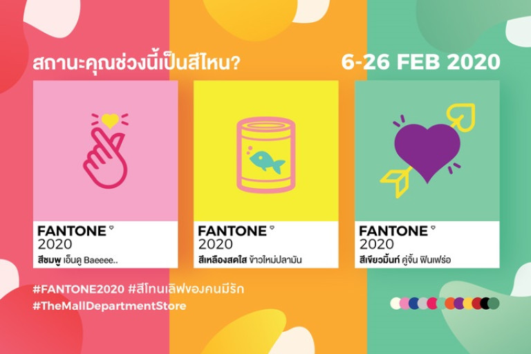 เข้าเดือนกุมภาพันธ์ เดือนแห่งความรักบรรยากาศรอบตัวดูจะเป็นสีชมพู เป็นเดือนที่รอยยิ้มและความสุขอบอวล ห้างสรรพสินค้าเดอะมอลล์ ร่วมเติมรัก จัดงาน “FANTONE 2020 สีโทนเลิฟของคนมีรัก” ให้สีบอกสถานะความรักของคุณ บอกเล่าถึงเรื่องราวและความหมายแฝงในสี พร้อมคัดสรรของขวัญแทนใจให้คนพิเศษที่คุณรักมากมายด้วยโปรโมชั่นสุดคุ้มลดสูงสุด 60 % ที่แผนก ACCESSORIES BAZAAR, BEAUTY HALL, LADIES' BOUTIQUE,LINGERIE SALON, SHOES & BAGS SALON, THE LIVING, KIDS PLANET, MEN'S INTREND, DENIM, MEN'S LEATHER