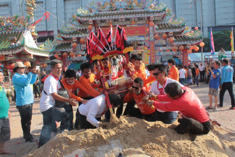 นอกจากนี้ ยังมีการอัญเชิญองค์พระเข้าบ้านเพื่อช่วยปัดเป่าสิ่งอัปมงคล และสิ่งชั่วร้ายออกจากบ้านเรือนตนเอง เหลือไว้เพียงสิ่งที่เป็นมงคล และความสุข โดยมีพี่น้องชาวไทยเชื้อสายจีนในพื้นที่ จ.ยะลา และจังหวัดใกล้เคียง เดินทางมาร่วมงานเป็นจำนวนมาก ทั้งนี้ จะมีพิธีลุยไฟในช่วงเย็นเวลาประมาณ 19.00 น. ที่บริเวณหน้าศาลเจ้าแม่ลิ้มกอเหนี่ยวยะลา