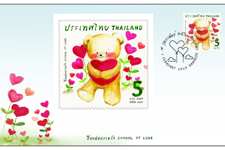 ไปรษณีย์ไทยต้อนรับเดือนแห่งความรักด้วยแสตมป์รักสลักใจ ภาพหมีน้อยกอดหัวใจ ใส่เทคนิคปั๊มฟอยล์วาวใสและหมึกเรืองแสง ตราไปรษณียากรชุดสื่อแห่งความรักที่ออกเป็นประจำทุกปี สำหรับปีนี้เป็นภาพวาดตุ๊กตาหมีกอดหัวใจ กลางแมกไม้หัวใจเบ่งบานสีสันสดใสสื่อถึงความรักแสนอบอุ่น ราคาดวงละ 5 บาท เต็มแผ่น 10 ดวง ราคา 50 บาทซองวันแรกจำหน่าย 14 บาท