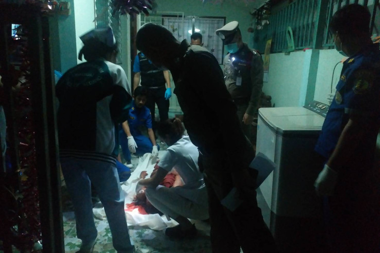 เมื่อเวลา 00.10 น.ของวันที่ 9 ก.พ.63 พ.ต.ต.ศุภชัยณกร เปี่ยมลาภ สารวัตรเวรสอบสวน สภ.ท่าเรือ อ.ท่ามะกา จ.กาญจนบุรี ได้รับแจ้งจากศูนย์วิทยุ 191ว่า ให้ช่วยไปตรวจสอบที่บ้านเลขที่ 339/1 ถนนพระแท่น หมู่บ้านร่มรื่น เขตเทศบาลเมืองท่าเรือพระแท่นฯ อ.ท่ามะกา จ.กาญจนบุรี มีเหตุลูกทำร้ายร่างกายแม่บังเกิดเกล้าจนเสียชีวิต จึงได้สั่งการให้ตำรวจสายตรวจรถยนต์ และรถจักรยานยนต์ไปตรวจสอบที่เกิดเหตุ และสามารถจับกุมคนร้ายที่ก่อเหตุเอาไว้ได้ ขณะกำลังจะหลบหนี โดยคนร้ายอยู่ภายในรถยนต์เก๋งนิสสัน รุ่นอาเมร่าสีขาว หมายเลขทะเบียน กบ-2729 ราชบุรี ที่จอดอยู่บริเวณหน้าบ้านในสภาพที่คลุ้มคลั่ง จึงรีบรายงาน พ.ต.อ.สรวิชญ์ บัวกลิ่น ผกก สภ.ท่าเรือ และเจ้าหน้าที่ตำรวจชุดสืบสวนฯ พร้อมประสานแพทย์เวรโรงพยาบาลมะการักษ์ และเจ้าหน้าที่ตำรวจพิสูจน์หลักฐานจังหวัดฯ ให้มาร่วมชันสูตรพลิกศพและเก็บหาหลักฐาน