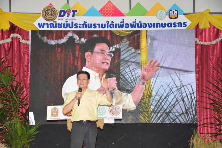 “ประกันรายได้ไม่ต้องกลัวว่าถ้ายางเหลือกิโลกรัมละ 50 บาท รัฐบาลจะประกันได้ที่กิโลกรัมละ 60 บาทโดยช่วยจ่ายเงินส่วนต่าง 10 บาทที่รัฐบาลจะโอนเงินผ่าน ธกส.เข้าบัญชีธนาคาร ธกส.ของพี่น้องที่ขึ้นทะเบียนโดยตรงทันทีเมื่อถึงเวลา จึงได้ 10 บาทบวกกับ 50 บาทต่อกิโลกรัม ที่พี่น้องขายในตลาด เป็น 60 บาท ตามราคาที่พี่น้องได้รับประกัน ประกันรายได้ทำให้พี่น้องมีรายได้สองกระเป๋า แต่ถ้าวันไหนยางกิโลกรัมละเกิน 60 บาท พี่น้องก็จะได้กระเป๋าเดียว โดยไม่ได้รับส่วนต่าง เพราะเกินรายได้ที่ประกัน ถ้าทำน้ำยางมาตรฐานได้กิโลกรัมละ 57 บาท ถ้าทำยางก้อนถ้วยจะได้กิโลกรัมละ 23 บาท” รมว.พาณิชย์ กล่าว