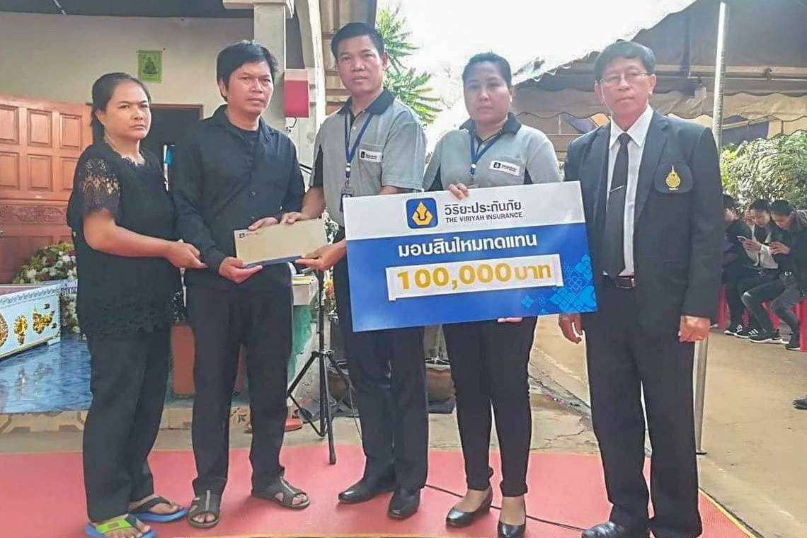 คุณวารี กกขุนทด ผู้จัดการศูนย์ปฎิบัติการสินไหมทดแทน และ ว่าที่ร้อยตรี กมลวรรณ โมรินทร์ ผู้จัดการสาขา จังหวัดนครราชสีมา ในสังกัดฝ่ายปฎิบัติการภาค 2 ( ภาคตะวันออกเฉียงเหนือ) บริษัท วิริยะประกันภัย จำกัด (มหาชน) เป็นผู้แทนบริษัทฯ ร่วมแสดงความเสียใจต่อครอบครัวของ คุณเอกกวิน ยืนทน นักศึกษามหาวิทยาลัยเทคโนโลยีราชมงคลอีสาน ซึ่งเสียชีวิตจากเหตุการณ์สะเทือนขวัญที่จังหวัดนครราชสีมา พร้อมทั้งได้มอบค่าสินไหมทดแทนจำนวน 100,000 บาท ตามสิทธิประโยชน์ที่ระบุไว้ในเงื่อนไขความคุ้มครองกรมธรรม์การประกันภัยอุบัติเหตุกลุ่มสำหรับสถานศึกษา ณ บ้านใหม่ไทยเจริญ อำเภอหนองบุญมาก จังหวัดนครราชสีมา