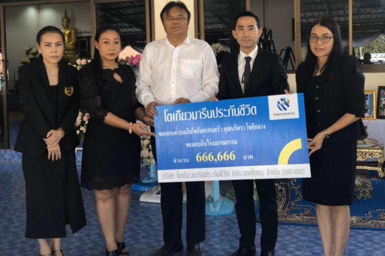 บริษัทโตเกียวมารีนประกันชีวิตโดยคุณขจรศักดิ์ มณีอินทร์ ผู้อำนวยการอาวุโสฝ่ายขาย เป็นตัวแทนมอบสินไหมประกันชีวิตจำนวนเงิน 666.666บาท จากเหตุการณ์ที่นครราชสีมาของผู้สูญเสียคือคุณนริศรา โชติกลาง ผู้รับมอบคือคุณธีรศักดิ์ โชติกลาง สามีและขอแสดงความเสียใจอย่างสุดซึ้งมาณที่นี้ด้วย