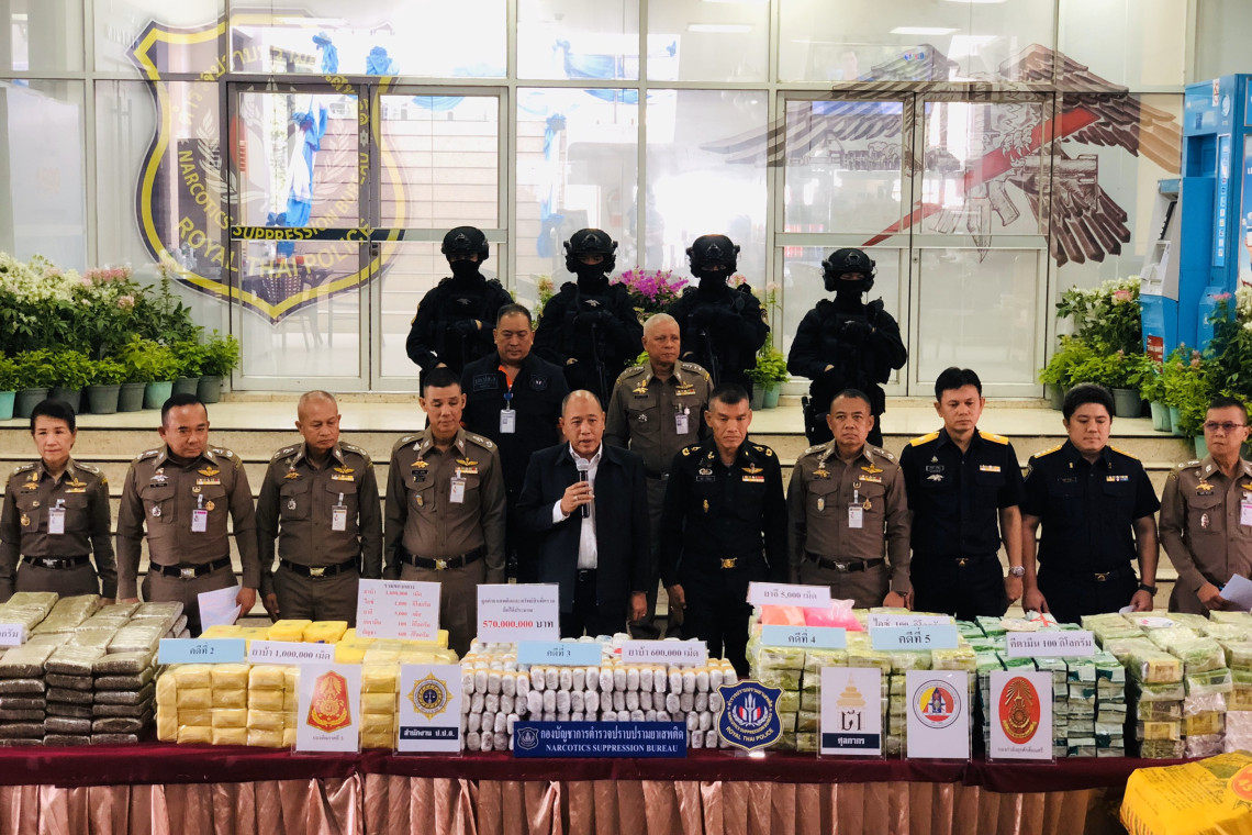 เมื่อเวลา 13.30 น. วันที่ 13 ก.พ. ที่กองบัญชาการตำรวจปราบปรามยาเสพติด (บช.ปส.)พล.ต.ท.วิสนุ ปราสาททองโอสถ ผู้ช่วย ผบ.ตร.ร่วมกับ พล.ต.ท.ชินภัทร สารสิน ผบช.ปส. และหน่วยงานที่เกี่ยวข้องแถลงผลการจับกุมและสกัดกั้นผู้ค้ายาเสพติดรายสำคัญ “ในช่วงเทศกาลวันหยุดยาว(มาฆบูชา) และวันแห่งความรัก”(วาเลนไทน์)รายสำคัญ 6 คดี ผู้ต้องหา 8 คน ของกลาง ยาบ้า 1,600,000 เม็ด ไอซ์ 1,000 กิโลกรัม, ยาอีหรือเอ็กซ์ตาซี่ 5,000 เม็ด เคตามีน 100 กิโลกรัมกัญชา 600 กิโลกรัม