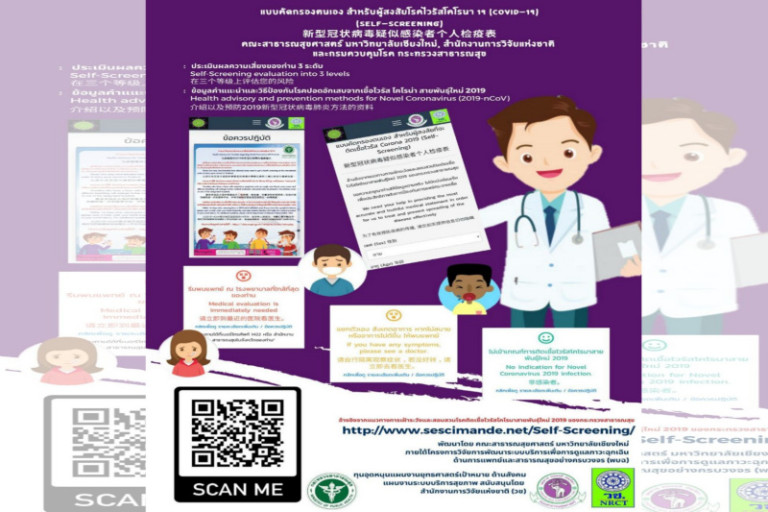 สำนักงานการวิจัยแห่งชาติ (วช.) ร่วมกับกระทรวงการอุดมศึกษา วิทยาศาสตร์ วิจัย และนวัตกรรม คณะสาธารณสุขศาสตร์ มหาวิทยาลัยเชียงใหม่ และกรมควบคุมโรค กระทรวงสาธารณสุข สร้างแบบคัดกรองตนเองสำหรับผู้สงสัยโรคไวรัสโคโรนา​ 19 (COVID-19) แบบออนไลน์เพื่อเป็นเครื่องมือหนึ่งในการประเมินตนเองว่ามีโอกาสที่จะติดโรคไวรัสโคโรนา 19 หรือไม่ แบบคัดกรองนี้ใช้คำถามโดยอ้างอิงจาก แนวทางการเฝ้าระวังและสอบสวนโรคไวรัสโคโรนา 19 ของกระทรวงสาธารณสุข ในรูปแบบของแบบประเมินออนไลน์ที่เข้าใจง่าย ง่ายต่อการกรอกข้อมูล และมีการประเมินผลทันทีเมื่อประเมินเรียบร้อยระบบจะแจ้งผลการประเมินใน 3 ระดับ คือ 1.ไม่เข้าเกณฑ์โรคไวรัสโคโรนา 19 (COVID-19) 2.แยกตัวเอง สังเกตอาการ หากไม่สบายหรืออาการไม่ดีขึ้นให้พบแพทย์ 3.รีบพบแพทย์ ณ โรงพยาบาลที่ใกล้ที่สุดของท่าน รวมทั้งยังมีคำอธิบาย และข้อควรปฏิบัติตัวที่ถูกต้องในรูปแบบของ infographic ที่เข้าใจได้ง่าย และ ยังสามารถ link ไปที่เว็ปไซต์ของกรมควบคุมโรคเพื่อให้ติดตามข้อมูลต่าง ๆ ได้ สำนักงานการวิจัยแห่งชาติ มหาวิทยาลัยเชียงใหม่ และกรมควบคุมโรค เห็นว่าการเผยแพร่การใช้งานแบบคัดกรองตนเอง สำหรับผู้สงสัยที่จะติดเชื้อไวรัสโคโรนา 19 (COVID-19) จะเป็นประโยชน์อย่างยิ่งสำหรับประชาชนทั่วไปสามารถประเมินเบื้องต้นได้ด้วยตนเอง เพื่อไม่ให้ตื่นตระหนกจนเกินไป เกิดความกลัว เครียด และวิตกกังวล ตลอดจนเป็นการลดภาระการทำงานของโรงพยาบาลกรณีไม่เข้าเกณฑ์การติดเชื้อดังกล่าว ในกรณีการวิเคราะห์ผลพบว่ามีความเสี่ยงจะได้รีบไปพบแพทย์เพื่อตรวจยืนยัน และหากติดเชื้อไวรัสโคโรนา จะได้เข้ารับการรักษาอย่างถูกต้องตามขั้นตอนการปฏิบัติของกระทรวงสาธารณสุขต่อไป ทั้งนี้ สามารถ เข้าไปประเมินเพื่อคัดกรองตนเองได้ที่ http://sescimande.net/Self-Screening/