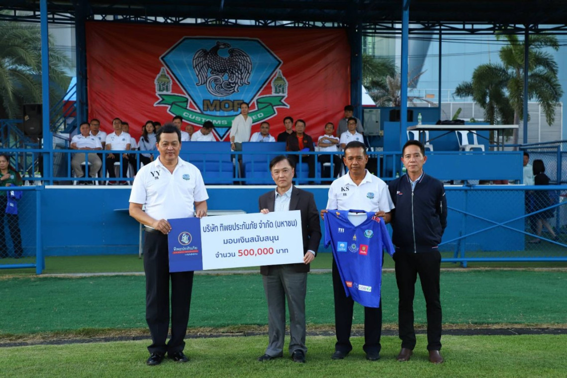 นายประสิทธิ์ชัย สุนทราภิรมย์ รองกรรมการผู้จัดการใหญ่ บมจ.ทิพยประกันภัย ร่วมงานเปิดตัวทีมฟุตบอล สโมสรเอ็มเอฟโอศุลกากรยูไนเต็ด (MOF CUSTOMS UNITED) “สิงห์นายด่าน” และร่วมสนับสนุนงบประมาณในการดำเนินงานของทีม โดยมีนายยุทธนา หยิมการุณ ประธานที่ปรึกษากิตติมศักดิ์ สโมสรเอ็มโอเอฟศุลกากรยูไนเต็ด รับมอบเงิน เพื่อเป็นการส่งเสริมการกีฬาและพัฒนาเยาวชนให้ไปสู่นักฟุตบอลอาชีพ รวมถึงการเตรียมความพร้อมทีมสำหรับการแข่งขัน ฟุตบอล M – 150 CHAMPIONSHIP 2020 (ไทยลีก 2) ในปีนี้ ณ สนามฟุตบอลสโมสรศุลกากร ลาดกระบัง