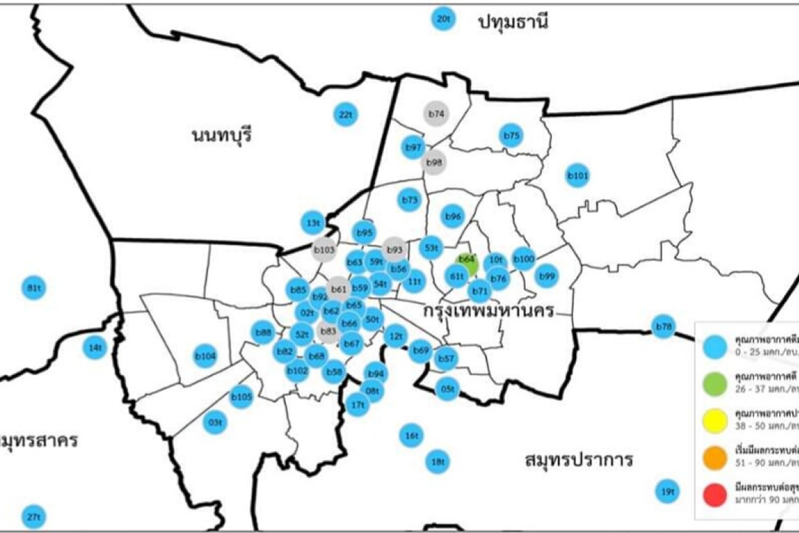 ผลการติดตามตรวจสอบคุณภาพอากาศในพื้นที่กรุงเทพมหานครและปริมณฑล โดยกรมควบคุมมลพิษร่วมกับกรุงเทพมหานคร จำนวน 54 สถานี ตรวจวัดค่าได้ 10 – 31 มคก./ลบ.ม. (ค่ามาตรฐานไม่เกิน 50 มคก./ลบ.ม) ปริมาณฝุ่นละอองมีแนวโน้มเพิ่มขึ้นจากเมื่อวานหลายสถานี แต่ยังอยู่ในเกณฑ์มาตรฐานทุกพื้นที่ ประชาชนสามารถทำกิจกรรมกลางแจ้งได้ตามปกติ อย่างไรก็ตาม คพ. จะรายงานสถานการณ์และแจ้งประสานข้อมูล ให้หน่วยงานที่เกี่ยวข้องดำเนินการควบคุม กำกับ ดูแล ภารกิจตามมาตรการ "ภายใต้แผนปฏิบัติการ ขับเคลื่อนวาระแห่งชาติ" อย่างต่อเนื่อง ทั้งนี้ ประชาชนสามารถติดตามสถานการณ์ได้ทางเว็บไซต์ Air4Thai.com แอปพลิเคชั่น Air4Thai และ bangkokairquality.com