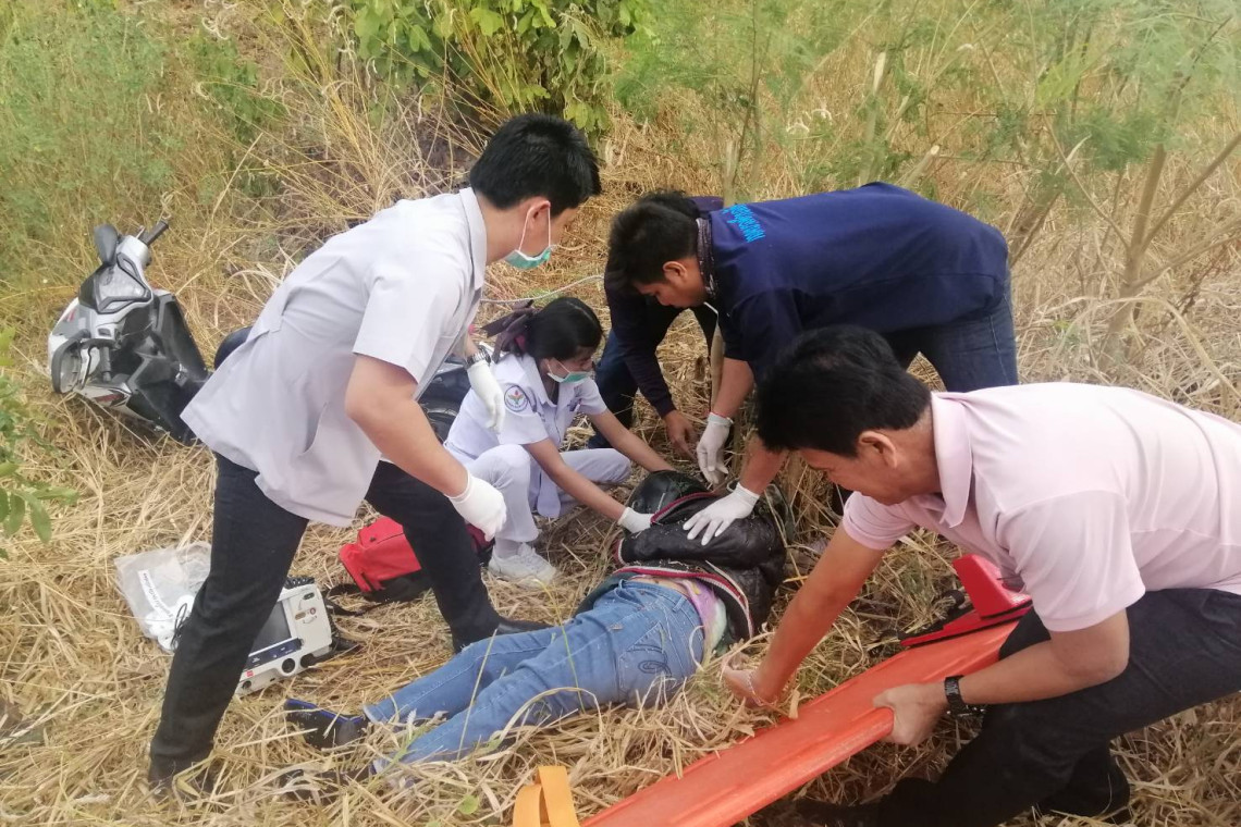เมื่อเวลา 09.15 น. วันนี้ (18 ก.พ.63) เจ้าหน้าที่ตำรวจ สถานีตำรวจภูธรทัพทัน  จังหวัดอุทัยธานี รับแจ้งเหตุทางวิทยุจากจุดตรวจทุ่งนาไทย ตำบลทุ่ง ว่าเกิดอุบัติเหตุรถจักรยายนต์ตกข้างทางมีผู้ได้รับบาดเจ็บสาหัส  จึงได้ประสานขอหน่วยกู้ชีพฉุกเฉินโรงพยาบาลทัพทัน ไปที่เกิดเหตุ พบรถจักรยายนต์ฮอนด้า รุ่นคลิก 125 สีขาวคาดแดง หมายเลขทะเบียน อนพ. – 117 กทม.ข้าวข้าวตกหล่นกระจัดกระจาย และใกล้กัน ผู้บาดเจ็บลักษณะนอนตะแคง ศรีษะที่สวมหมวกกันน๊อคอัดติดกับต้นกระถินลักษณ์คอหัก เมื่อเจ้าหน้าที่หน่วยกู้ชีพโรงพยาบาลพยายามจะช่วยชีวิต แต่ตรวจชีพขจรแล้ ไม่สนองตอบ คาดว่าจะทนพิษบาดแผลไม่ไหว ประกอบกับสายรัดของหมวกกันน๊อคที่สวมไว้ไปรัดคอซ้ำจนแน่นทำให้ใจไม่ออกอีก และขาดใจเสียชีวิตในเวลาต่อมา ทราบชื่อผู้เสียชีวิตต่อมา คือนางประสิทธิ์ ย่านกลาง อายุ 50 ปี อยู่บ้านเลขที่ ( ตามบัตรประชาชน ) 33 / 1 หมู่ที่ 1 ตำบลทัพทัน อำเภอทัพทัน จังหวัดอุทัยธานี