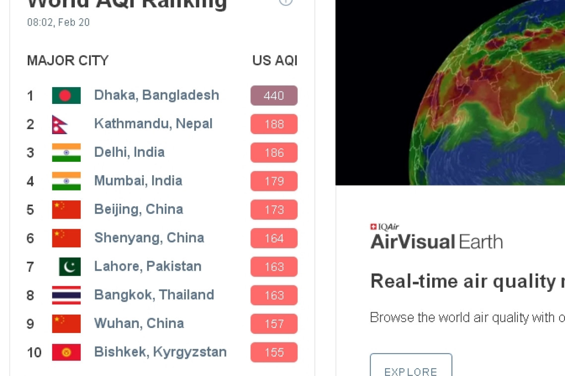 ทั้งนี้ www.airvisual.com ซึ่งรายงานคุณภาพอากาศและจัดอันดับเมืองมลพิษ โดยรายงานแบบเรียลไทม์ วันที่ 20 ก.พ.63 เวลา 08.01 น. พบว่าเช้านี้ เมืองหลวงของไทย กทม.อยู่ในลำดับที่ 8 ของโลก ค่าฝุ่นอยู่ที่ 163 US AQI และเมืองเชียงใหม่ อยู่ในลำดับที่ 12 ของโลก ค่าฝุ่นอยู่ที่ 152 US AQI