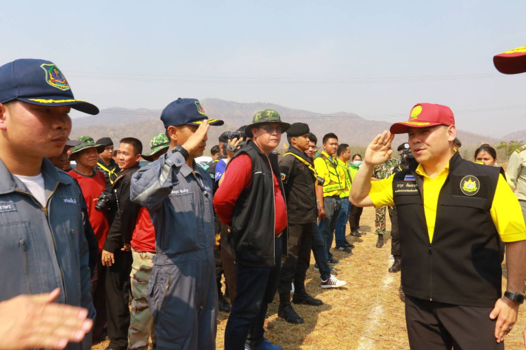 พร้อมกันนี้ รมว.ทส. เดินทางไปจุดสกัดป้องกันไฟป่าดอยพระบาท บริเวณอ่างเก็บน้ำวังเฮือ อำเภอแม่ทะ จังหวัดลำปาง ตรวจเยี่ยมและปล่อยแถวกำลังพล พร้อมมอบถุงยังชีพ เพื่อสร้างขวัญกำลังใจให้กับเจ้าหน้าที่ จิตอาสา และเครือข่ายภาคประชาชน ที่ร่วมเป็นกำลังสำคัญในการป้องกันและดับไฟป่า เน้นย้ำเรื่องความปลอดภัยและขอให้ทุกคนเดินหน้าช่วยกันป้องกันและดับไฟป่าอย่างเต็มที่ รวมถึงช่วยขยายผลสร้างการรับรู้ สร้างแนวร่วมในการดูแลรักษาทรัพยากรป่าไม้อันมีค่าให้คงอยู่ถึงลูกหลาน