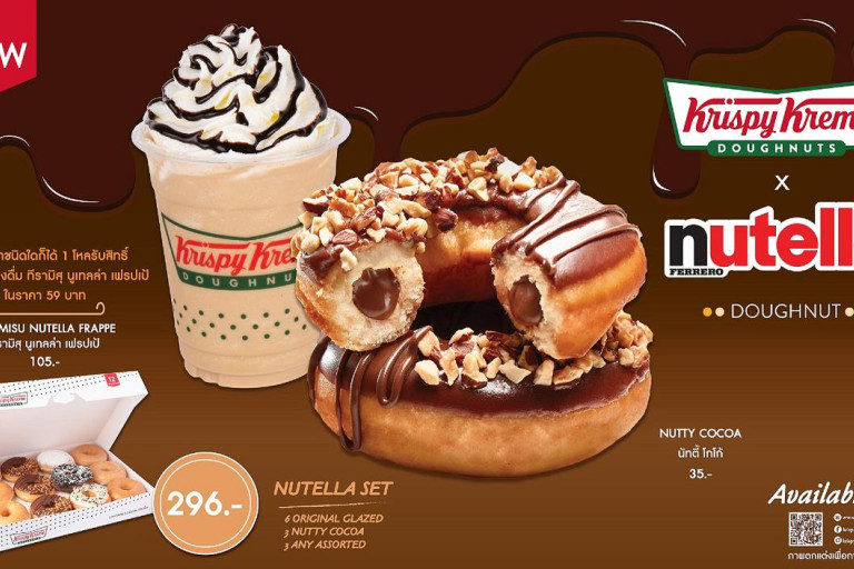 คริสปี้ ครีม (Krispy Kreme) โดนัทสูตรลิขสิทธิ์อันดับ 1 ที่ครองใจคนทั่วโลก พร้อมส่งความอร่อยที่ทุกคนรอคอยกับ “นูเทลล่า ฟิล ริง โดนัท” โดนัทนุ่มออริจินัลเกลซสุดฮิต สอดไส้นูเทลล่า ช็อกโกแลตเข้มข้น หอมมัน เต็มๆวง โรยด้วยถั่วเฮเซลนัท กรุบกรอบ ให้อร่อยกันตั้งแต่คำแรกจนคำสุดท้าย ในราคาเพียงชิ้นละ 35 บาท หรือแบบเซ็ทในราคา 296 บาท พร้อมเพิ่มความสุขให้อร่อยถึงใจในรสชาติ มันส์ถึงขีดสุด เมื่อซื้อโดนัทชนิดใดก็ได้ 1 โหลแลกซื้อ“ทีรามิสุ นูเทลล่า เฟรปเป้” (Tiramisu Nutella Frappe)ในราคาเพียง 59 บาททันที