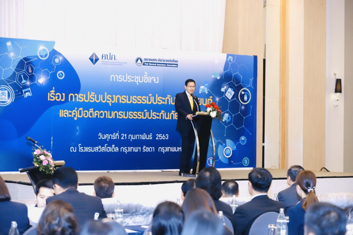ดร.สุทธิพล ทวีชัยการ เลขาธิการคณะกรรมการกำกับและส่งเสริมการประกอบธุรกิจประกันภัย (เลขาธิการ คปภ.) เป็นประธานเปิดการประชุมชี้แจงการปรับปรุงกรมธรรม์ประกันภัยรถยนต์และคู่มือตีความกรมธรรม์ประกันภัยรถยนต์ ครั้งที่ 1 ในวันที่ 21 กุมภาพันธ์ 2563 ณ โรงแรมสวิสโฮเต็ล กรุงเทพฯ โดยมีวัตถุประสงค์เพื่อทำความเข้าใจ ในแนวทางปฏิบัติให้กับผู้ที่เกี่ยวข้องทั้งจาก สำนักงาน คปภ. และบริษัทประกันวินาศภัย โดยมีผู้ร่วมรับฟังการชี้แจงในครั้งนี้กว่า 400 คน