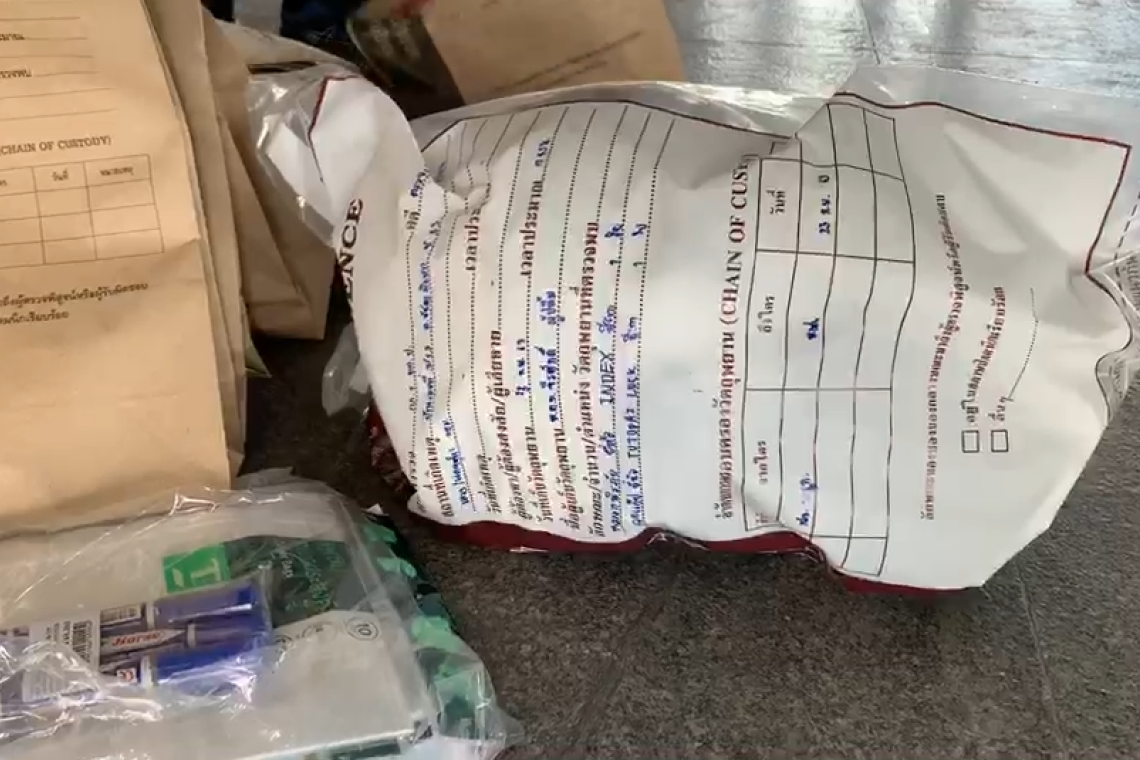 อย่างไรก็ตาม ก่อนหน้านี้ช่วงเวลาประมาณ 12.30 น. ตำรวจกองปราบปรามได้นำหลักฐาน อีกชุดหนึ่งกว่า 10 ถุง เข้ามาแล้วก่อนหน้านี้แล้ว แต่ไม่เปิดเผยว่ามีอะไรบ้าง