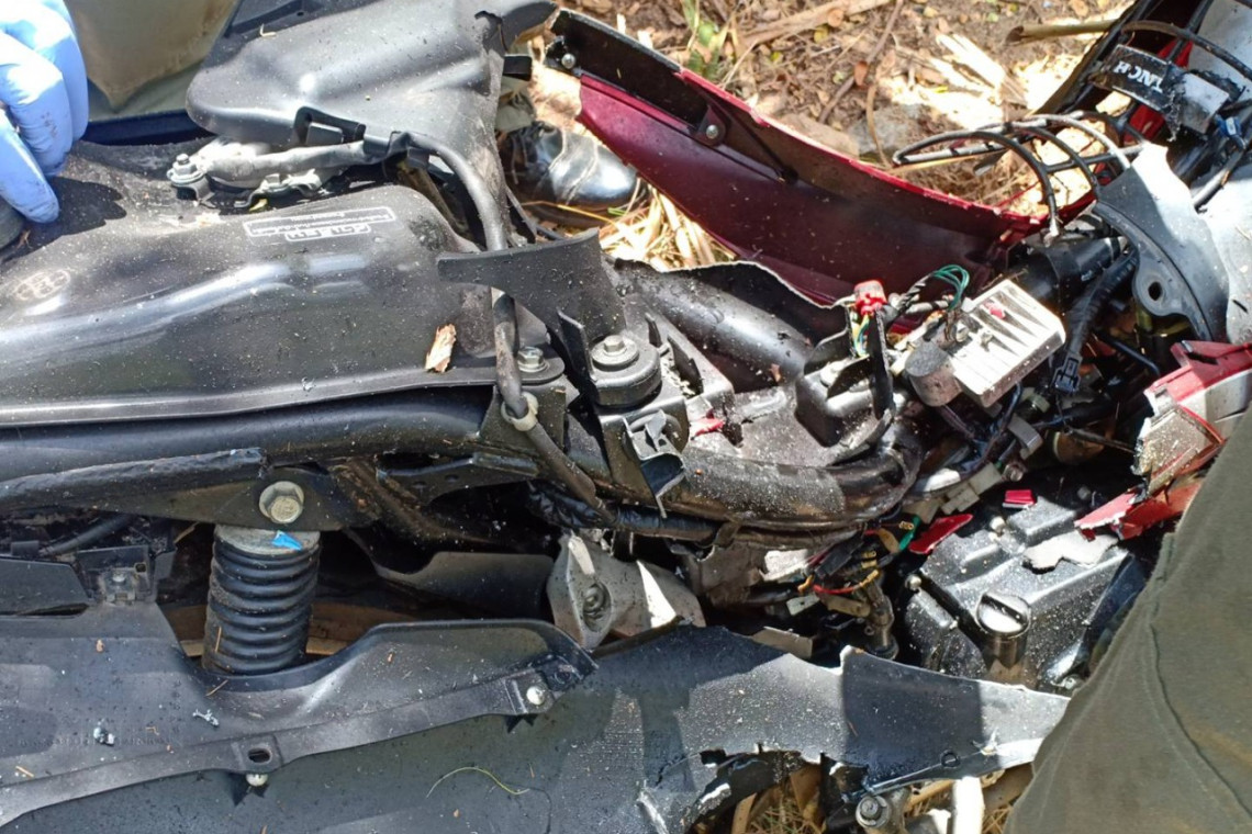 กระทั่งเจ้าหน้าที่ชุด EOD เมื่อถึงที่เกิดเหตุ ได้เปิดเครื่องรบกวนสัญญาณโทรศัพท์มือถือและวิทยุสื่อสาร ก่อนที่จะใช้เครื่องตรวจจับวัตถุโลหะค่อยๆ เดินตรวจสอบไปยังจุดที่รถ จยย.จอดอยู่ จากการตรวจสอบพบว่า รถ จยย.คันดังกล่าวมีระเบิดแสวงเครื่อง ที่คนร้ายประกอบใส่ไว้ในกล่องเหล็ก หนัก 10 กก. จุดชนวนด้วยวิทยุสื่อสาร ที่คนร้ายได้นำไปใส่ซุกซ่อนไว้ในช่องใส่หมวกกันน็อกใต้เบาะนั่ง เจ้าหน้าที่จึงได้กันผู้ไม่เกี่ยวข้องออกห่าง ก่อนที่จะใช้ความระมัดระวังในการถอดระเบิดแสวงเครื่อง ออกมาจากใต้เบาะและเครื่องแรงดันน้ำพลังสูงในการยิงทำลาย