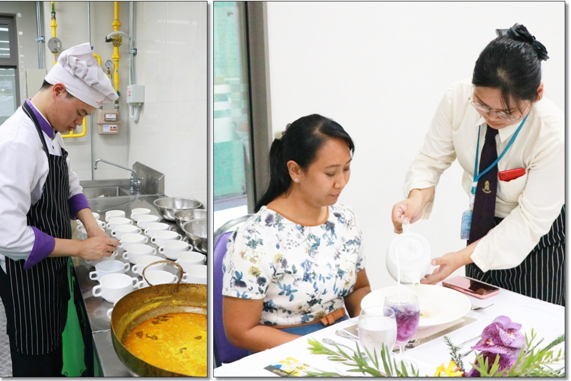 นายฐานริส นุสดิน นักศึกษาชั้นปีที่ 2 ประกาศนียบัตรวิชาชีพชั้นสูง สาขาเชฟอาหารไทย เล่าถึงกระบวนการเตรียมงานว่าทีมงานได้ร่วมกันวางแผนจัดคอร์สอาหาร ซึ่งแบ่งเป็นคอร์ส A และคอร์ส B แต่ละคอร์สจะมีเมนูอาหารทานเล่น อาหารจานหลัก ซุป และของหวานที่แตกต่างกัน จากนั้นทำการสำรวจโดยให้ครู นักเรียนและนักศึกษาทำแบบสำรวจจำนวน 50 ชุด เพื่อหาว่าคอร์สอาหารคอร์สใดได้รับความสนใจมากที่สุด ผลปรากฏว่าทั้ง 2 คอร์สได้รับความนิยมเท่ากัน