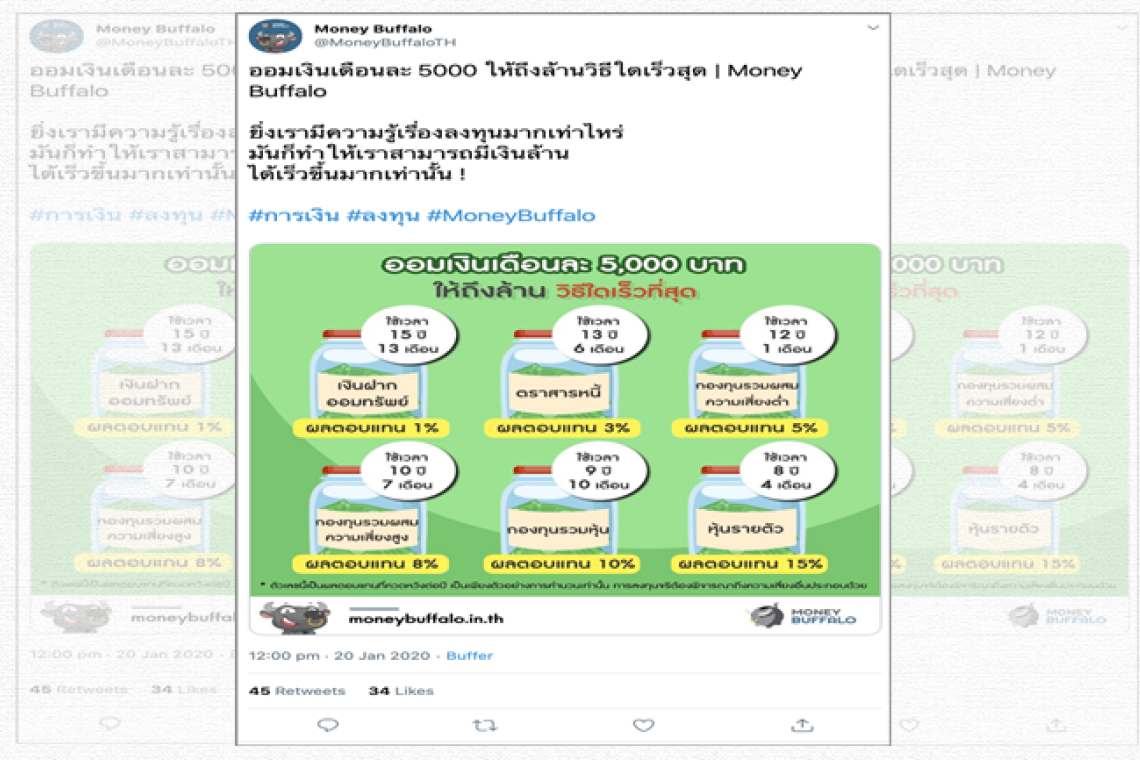 คำกล่าวที่ว่า “โลกนี้หมุนด้วยเงิน” นั้นจริงหรือ? คำตอบนั้นคงไม่ได้ตายตัว เพราะขึ้นอยู่กับไลฟ์สไตล์ของแต่ละคน แต่คงปฏิเสธไม่ได้ว่า เงินนั้นยังคงสำคัญกับชีวิตเพราะเราทุกคนจำเป็นต้องใช้จ่ายในทุกๆ วัน ทั้งเงินยังเป็นตัวแปรสำคัญในการตัดสินใจหลายๆ เรื่องของชีวิต ไม่ว่าจะเรื่องเล็กหรือเรื่องใหญ่ ซึ่งล้วนมีทั้งข้อดีและข้อเสีย เช่นเดียวกับเหล่าทวิตเตอร์ชาวไทย ที่นอกเหนือจากการทวีตข้อความเกี่ยวกับเรื่อง K-pop กีฬา วงการบันเทิง และสิ่งที่เกิดขึ้นแต่ละวันในประเทศไทยแล้ว พวกเขายังชอบทวิตแลกเปลี่ยนความคิดเห็นเกี่ยวกับเรื่องเงินๆ ทองๆ โดยเฉพาะการเงินส่วนบุคคลผ่านแฮชแท็กต่างๆ อาทิ #เก็บเงิน, #ออมเงิน, #การเก็บเงิน และ #การออมเงิน