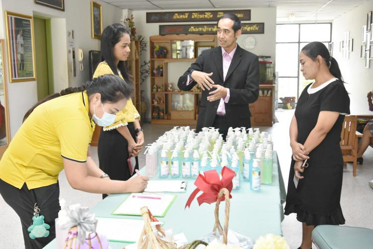 งานศูนย์เครื่องมือกลาง จับมือสาขาเคมี คณะวิทยาศาสตร์ มรภ.สงขลา ผลิตเจลล้างมือ โดยแจกจ่ายบุคลากรในมหาวิทยาลัยก่อน รับมือการระบาดของCOVID-19 พร้อมเตรียมเร่งกำลังผลิตแจกจ่ายประชาชนใน จ.สงขลา และใกล้เคียง เมื่อวันที่ 2 มี.ค.63 อ.พิเชษฐ์ จันทวี รองอธิการบดีฝ่ายยุทธศาสตร์พัฒนาระบบการบริหารและพัฒนาหน่วยงาน มหาวิทยาลัยราชภัฏสงขลา (มรภ.สงขลา) ร่วมแจกจ่ายเจลล้างมือให้แก่หน่วยงานต่างๆ ภายในมหาวิทยาลัย ตามมาตรการป้องกันการแพร่ระบาดเชื้อไวรัสโคโรนา 2019 (COVID-19) โดยความร่วมมือระหว่างงานศูนย์เครื่องมือกลาง สถาบันวิจัยและพัฒนา นำโดย ผศ.ดร.ทวีสิน นาวารัตน์ รองผอ.ฝ่ายวิจัยและยุทธศาสตร์ สถาบัน สถาบันวิจัยและพัฒนา ร่วมกับสาขาเคมี คณะวิทยาศาสตร์และเทคโนโลยี มรภ.สงขลา นำทีมโดย ผศ.ดร.อนุมัติ เดชนะ คณบดีคณะวิทยาศาสตร์และเทคโนโลยี สนับสนุนบุคลากรและร่วมแจกเจล พร้อมด้วย ผศ.เชาวนีพร ชีพประสพ และ ดร.ธีรยุทธ์ ศรียาเทพ อาจารย์สาขาเคมี สำหรับการผลิตผลิตเจลล้างมือในลอตแรกนี้ สามารถผลิตเจลล้างมือขนาด 240 mlได้ 200 ขวด ขนาด 200 ml 36 ขวด ขนาด 30 ml 80 ขวด ขนาด 60 ml 157 ขวด ภายใต้การสนับสนุนงบประมาณจากมหาวิทยาลัย และบุคลากรในการผลิตเจลล้างมือจากคณะวิทยาศาสตร์และเทคโนโลยี มรภ.สงขลา ทั้งนี้ มหาวิทยาลัยมีนโยบายที่จะแจกจ่ายเจลล้างมือให้แก่บุคลากรทุกคน ขณะนี้อยู่ระหว่างรอวัตถุดิบ เมื่อพร้อมแล้วจะเร่งผลิตโดยเร็วที่สุด เพื่อแจกจ่ายให้แก่ประชาชนใน จ.สงขลา และพื้นที่ใกล้เคียงด้วย