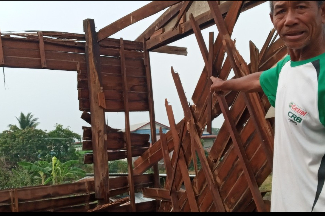 นายพัน พรหมศร อายุ 67ปี ชาวบ้านบ้านม่วง บอกว่า เมื่อคืนประมาณสองทุ่มครึ่ง พายุหมุนมาแรงมาก ไม่ถึง 20 นาที ทั้งลมและฝน เสียงครืนครืนจากนั้นก็ได้ยินเสียงหลังคาบ้านดังโครมถล่มลงมา ตนและยายพากันหลบอยู่ห้องข้างล่าง ทั้งกลัวทั้งตกใจ เกือบ 20ปีแล้วที่ไม่เคยเจอแบบนี้ บ้านของตนหลังคาบ้านชั้น2พังลงมา ไม่รู้หลังคาบ้านหล่นไปไหนไม่รู้