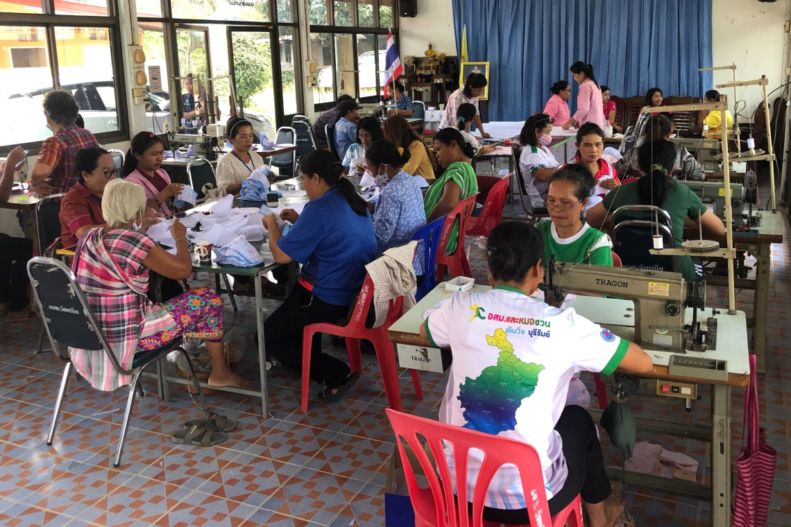 อบต.วังเหนือ จ.บุรีรัมย์ ห่วงใยประชาชนในพื้นที่ เร่งระดมพนักงาน ผู้นำชุมชน อสม. กลุ่มสตรีจิตอาสา และประชาชน เร่งตัดเย็บหน้ากากอนามัย (จากผ้า) เพื่อแจกชนิดแบบปูพรมให้ชาวบ้านฟรี ทุกคนทุกครัวเรือน 12 หมู่บ้าน ทั้งตำบลร่วม 4,000 คน หลังจากจังหวัดบุรีรัมย์ พบมีผู้ติดเชื้อโควิด-19 แล้ว 1 ราย