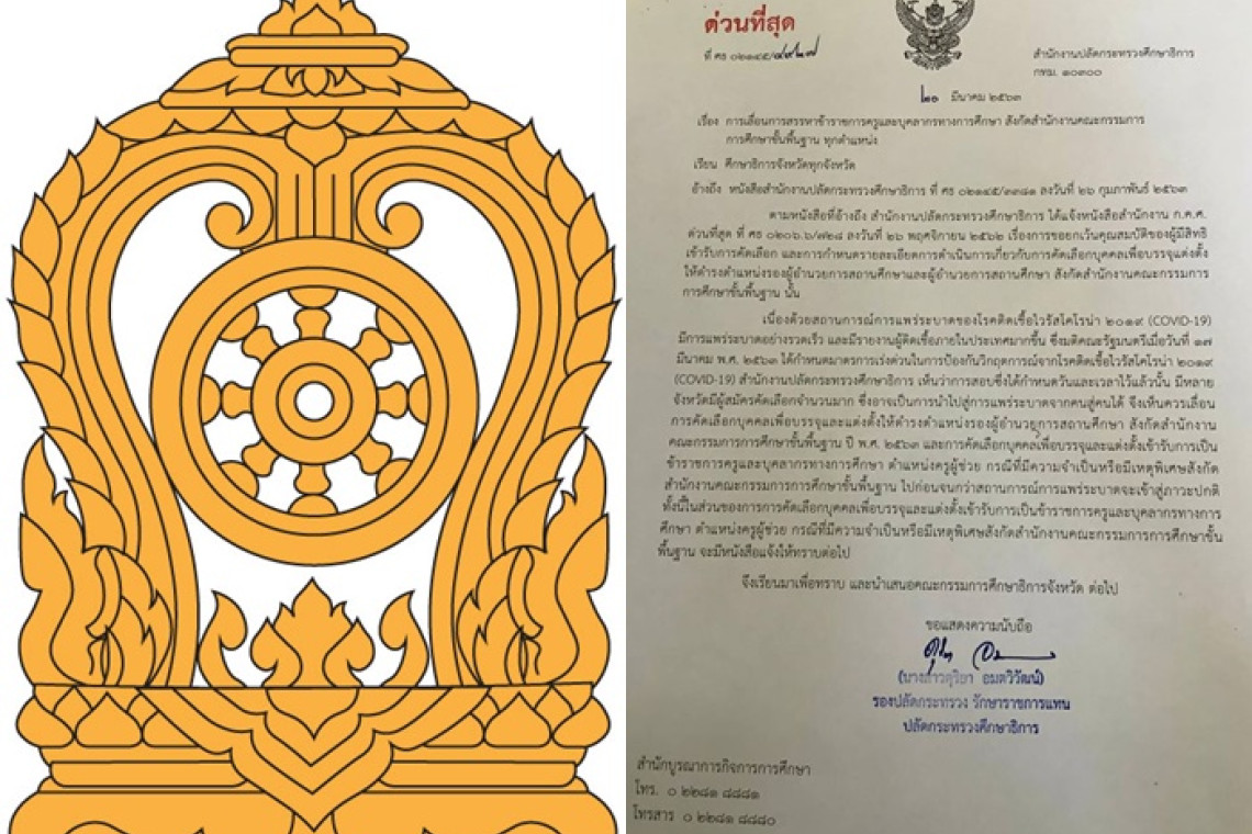 สำนักงานปลัดกระทรวงศึกษาธิการ มีหนังสือด่วนที่สุด แจ้งศึกษาธิการจังหวัด เลื่อนการคัดเลือกบุคคลเพื่อดำรงตำแหน่งรองผอ.สถานศึกษา สังกัดสำนักงานคณะกรรมการการศึกษาขั้นพื้นฐาน (สพฐ.) พ.ศ.2563 และการคัดเลือกบุคคลเพื่อบรรจุแต่งตั้งเป็นข้าราชการครู และครูผู้ช่วย กรณีที่มีความจำเป็นหรือมีเหตุพิเศษสังกัดสพฐ. ออกไปก่อน เนื่องจากสถานการณ์การระบาดของเชื้อไวรัสโควิด-19 จนกว่าสถานการณ์การระบาดจะเข้าสู่ภาวะปกติ