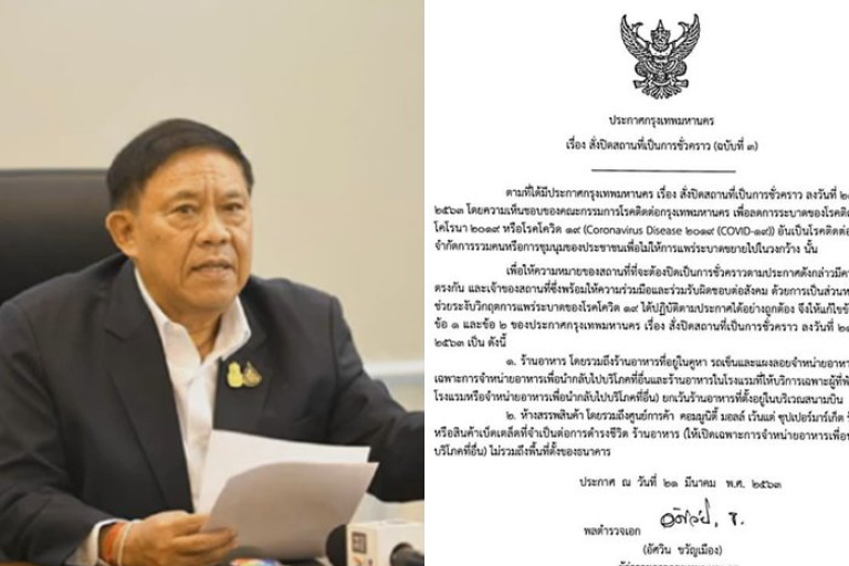 พล.ต.อ.อัศวิน ขวัญเมือง ผู้ว่าฯกทม.ได้ออกประกาศกทม.เรื่องสั่งปิดสถานบริการชั่วคราว ฉบับที่ 3 โดยระบุ แก้ไขข้อความในข้อ 1 และข้อ 2 ของประกาศกทม.เรื่องสั่งปิดสถานที่ฯ ลงวันที่ 21 มี.ค.63 ดังนี้