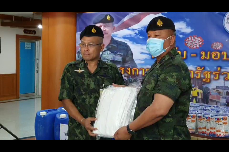 กอ.รมน.ภาค4 ส่วนหน้า ส่งมอบสิ่งของอุปกรณ์ให้หน่วยในพื้นที่ ดำเนินกิจกรรมโครงการประชารัฐร่วมใจต้านภัยโควิด–19