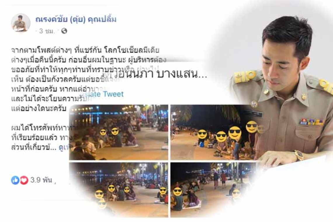 จากประเด็นดังกล่าวล่าสุดทาง นายกตุ้ย ณรงค์ชัย (ตุ้ย) คุณปลื้ม นายกเทศมนตรีเทศบาลเมืองแสนสุข จ.ชลบุรี ได้ออกมาโพสต์ข้อความผ่านเฟสบุ๊กส่วนตัวระบุว่า........... จากตามโพสต์ต่างๆ ที่แชร์กัน โลกโซเชียลมีเดีย ต่างๆเมื่อคืนนี้ครับ ก่อนอื่นผมในฐานะ ผู้บริหารต้องขออภัยที่ทำให้ทุกๆท่านที่ทราบข่าวหรือ ผ่านไปเห็น ต้องเป็นกังวลครับแต่ขอชี้แจงตามอำนาจหน้าที่ก่อนครับ หากแต่อำนาจหน้าที่ของผมมีจำกัดและไม่ได้จะโยนความรับผิดชอบไปยังหน่วยงานอื่นแต่อย่างใดนะครับ