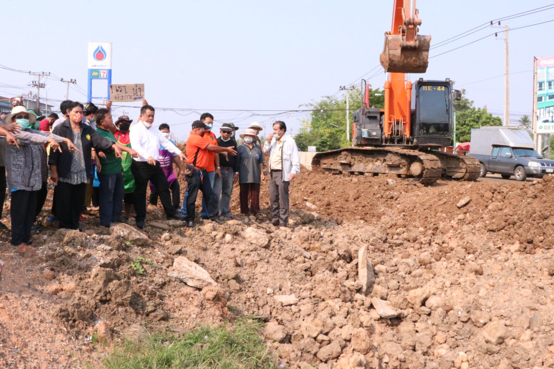 เมื่อเวลา 11.30 น. วันที่ 24 มกราคม ที่ริมถนนทางหลวงชนบท นม. 1120 บริเวณหน้าสถานีบริการน้ำมันเชื้อเพลิง ปตท.ตะคองเก่า อ.เมือง จ.นครราชสีมา นายศักดิ์ชัย ชาติพุดซา กำนันตำบลหนองกระทุ่ม อ.เมือง และนายกสมาคมกำนันผู้ใหญ่บ้านจังหวัดนครราชสีมา พร้อมผู้นำชุมชนและชาวบ้าน ต.หนองกระทุม จำนวนกว่า 50 คน เดินทางมาพบผู้ควบคุมงานก่อสร้างโครงการถนนสายทางหลวงชนบท นม.1120 แยกทางหลวงหมายเลข 2 ถนนมิตรภาพ-บ้านโคกไผ่ ต.หมื่นไวย อ.เมือง จ.นครราชสีมา เพื่อร้องขอให้เร่งขนย้ายกองดินที่ปิดขวางเส้นทางน้ำธรรมชาติ