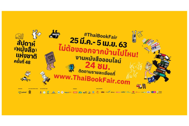 โดยสามารถรับชมผ่านเว็บไซต์ เฟซบุ๊คเพจ BooK Thai และยูทูปชาแนล PUBAT สมาคมผู้จัดพิมพ์และผู้จำหน่ายหนังสือแห่งประเทศไทย พร้อมทั้งคลิปน่าสนใจจากเพื่อนสำนักพิมพ์ผ่านช่องดังกล่าวได้ตลอด 24 ชั่วโมงนอกจากความสนุกสนานของกิจกรรมแล้วยังมีโปรโมชั่นพิเศษมากมาย อาทิ โปรจากใจกับคูปองส่วนลดมูลค่า 30 บาท เพียงใส่โค้ด PUBAT30 เมื่อซื้อครบ 300 บาท จำนวน 3,000 ใบต่อวันไม่จำกัดจำนวนครั้ง คูปองส่วนลดมูลค่า 100 บาท เพียงใส่โค้ด PUBAT100 เมื่อซื้อครบ 1,000 บาท จำนวน 100 ใบต่อวัน ต่อลูกค้า 1 ท่าน และคูปองส่วนลดมูลค่า 500 บาท เมื่อซื้อครบ 1,000 บาท สำหรับผู้โชคดีที่ร่วมเล่นกิจกรรมในเว็บไซต์ ThaiBookFair.com จำนวน 50 ใบต่อวัน พร้อมโปรโมชั่น “ฟรีค่าส่ง” เมื่อซื้อครบ 600 บาท กับทุกสำนักพิมพ์ที่ร่วมรายการ หรือรับส่วนลดค่าส่งสุดพิเศษจาก Kerry Express นอกจากนี้ยังมีคูปองส่วนลดพิเศษจาก ลาซาด้า มูลค่า 2,000,000 บาท และคูปองส่วนลดจาก ช้อปปี้ มูลค่า 200,000 บาท ด้วย ช้อปหนังสือดิ้นได้ใน “สัปดาห์หนังสือแห่งชาติ ครั้งที่ 48” ภายใต้แนวคิด “หนังสือดิ้นได้ไปออนไลน์” ตั้งแต่วันที่ 25 มีนาคม – 5 เมษายน 2563 ทาง www.ThaiBookFair.com ตลอด 24 ชั่วโมง ติดตามรายละเอียดวิธีการ ช้อป โปรโมชั่นและกิจกรรมดีๆ ได้ทาง Facebook Fanpage: BooK Thai และ Line @Book Thai : http://bit.ly/ThaiBookFair_LINE