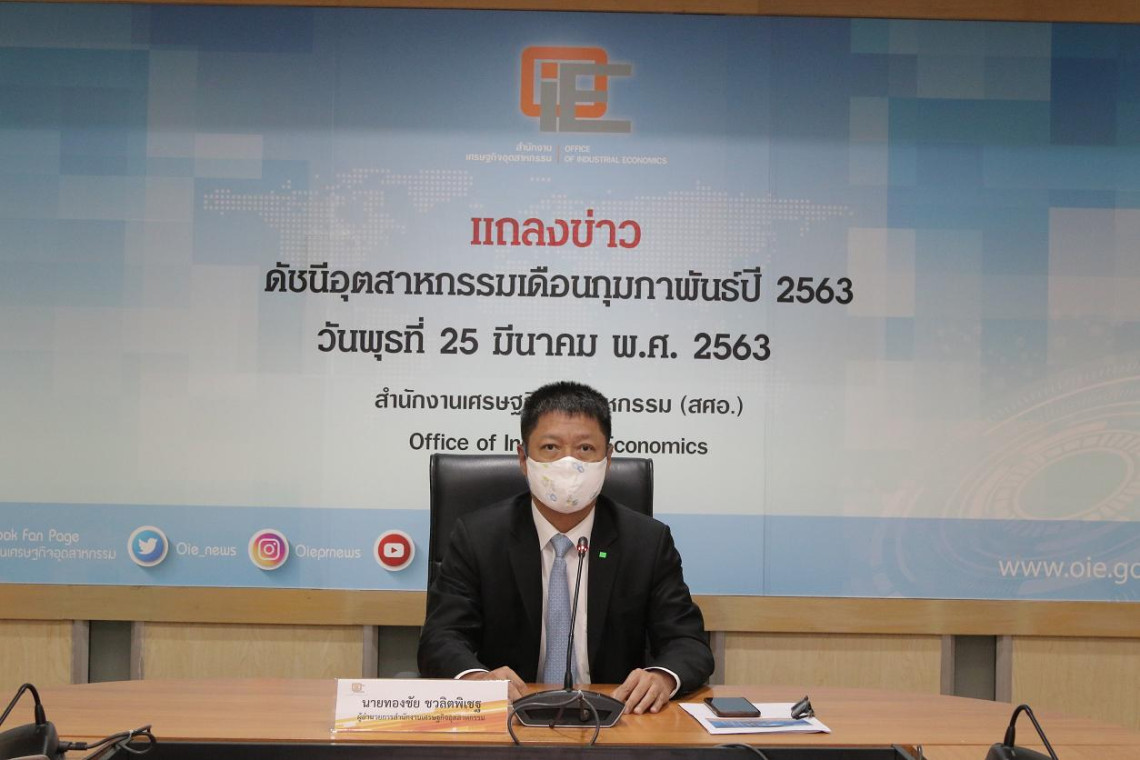 “สศอ.”เผยดัชนีผลผลิตอุตสาหกรรม ก.พ.หดตัวร้อยละ 5.19 จากเศรษฐกิจโลกและภัยแล้ง แต่โควิด-19 ส่งผลให้บางอุตสาหกรรมขยายตัว โดยเฉพาะอุตสาหกรรมอาหารเกือบทุกประเภท มีการใช้แรงงานเพิ่ม ยกเว้นน้ำตาลทรายและแป้งมัน ขณะที่ผู้ผลิตอุตสาหกรรมสำคัญชะลอการผลิตรอดูสถานการณ์คำสั่งซื้อที่จะมีเพิ่มขึ้น นายทองชัย ชวลิตพิเชฐ ผู้อำนวยการสำนักงานเศรษฐกิจอุตสาหกรรม(สศอ.) เปิดเผยว่า ดัชนีผลผลิตอุตสาหกรรมหรือ MPI เดือนก.พ.63 หดตัวเมื่อเทียบจากช่วงเดียวกันของปีก่อนร้อยละ 5.19 ผลกระทบของเศรษฐกิจโลกชะลอตัวและภัยแล้ง ขณะที่อัตราการใช้กำลังการผลิตอยู่ที่ร้อยละ 65.33 สำหรับสถานการณ์โควิด-19 ส่งผลให้ภาคอุตสาหกรรมบางกลุ่มกลับมาขยายตัวและมีการใช้แรงงานในภาคอุตสาหกรรมเพิ่มขึ้น โดยดัชนีแรงงานปรับตัวเพิ่มขึ้นเล็กน้อยจากระดับ 102.08 มาอยู่ที่ระดับ 102.63 ขยายตัวเพิ่มขึ้นเมื่อเทียบจากช่วงเดียวกันของปีก่อนร้อยละ 1.88 โดยเฉพาะในอุตสาหกรรมอาหารเกือบทุกประเภทที่มีการผลิตเพิ่มขึ้น ยกเว้นอุตสาหกรรมน้ำตาลทรายที่ได้รับผลกระทบจากภัยแล้ง จึงมีปริมาณอ้อยเข้าโรงงานลดลง โดยมีดัชนีผลผลิตหดตัวจากช่วงเดียวกันของปีก่อนร้อยละ 36.56 และอุตสาหกรรมแป้งมันที่เกิดโรคระบาด จึงขาดวัตถุดิบในการผลิต ทั้งนี้อุตสาหกรรมหลักที่ส่งผลลบต่อดัชนี MPI เดือนก.พ.63 ได้แก่ รถยนต์และเครื่องยนต์ จากผลกระทบสงครามการค้า และน้ำตาลจากภาวะภัยแล้ง สำหรับอุตสาหกรรมหลักที่ยังคงขยายตัวดีเดือนกุมภาพันธ์ได้แก่ เภสัชภัณฑ์ เคมีภัณฑ์ที่ใช้รักษาโรค ขยายตัวเพิ่มขึ้นจากช่วงเดียวกันของปีก่อนร้อยละ 40.37 จากผลิตภัณฑ์เกือบทุกรายการสินค้า (ยกเว้นยาผง) เนื่องจากผู้ผลิตบางรายขาดวัตถุดิบเพื่อผลิตในเดือนก่อนจึงเร่งผลิตและส่งมอบให้ลูกค้าในเดือนนี้แทน รวมถึงปัญหาเครื่องจักรชำรุดและปัญหาคุณภาพน้ำในปีก่อนที่ทำให้ผลิตได้น้อยกว่าปกติ อาหารทะเลแช่แข็ง ขยายตัวเพิ่มขึ้นจากช่วงเดียวกันของปีก่อนร้อยละ 26.55 ปรับตัวเพิ่มขึ้นทุกผลิตภัณฑ์จากความต้องการภายในประเทศที่เพิ่มขึ้นในช่วงนี้ โดยเฉพาะปลาแช่แข็งและเนื้อปลาบด จากความกังวลโควิด-19 ทำให้ผู้บริโภคมีความต้องการและสำรองสินค้าเพิ่มขึ้น ส่วนชิ้นส่วนและแผ่นวงจรอิเล็กทรอนิกส์ ขยายตัวเพิ่มขึ้นจากช่วงเดียวกันของปีก่อนร้อยละ 5.60 เนื่องจากตลาดโลกเริ่มมีความต้องการชิ้นส่วนอิเล็กทรอนิกส์เพิ่มขึ้นจากปีก่อน หลังจากผ่านช่วงตกต่ำของอุตสาหกรรมมาหลายปี โดยเฉพาะแผ่นวงจรพิมพ์ (PCBA/PWB) ซึ่งอุตสาหกรรมชิ้นส่วนอิเล็กทรอนิกส์เริ่มมีทิศทางที่ดีขึ้น เบียร์ ขยา